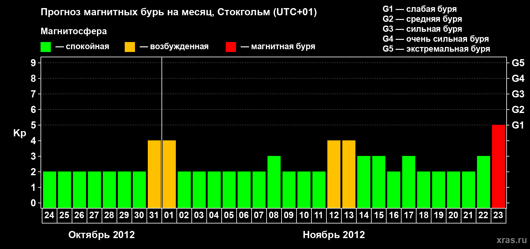Прогноз магнитных бурь в Стокгольме — 24 октября 2012 года