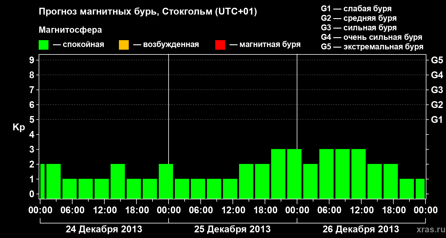 Прогноз магнитных бурь в Стокгольме — 24 декабря 2013 года