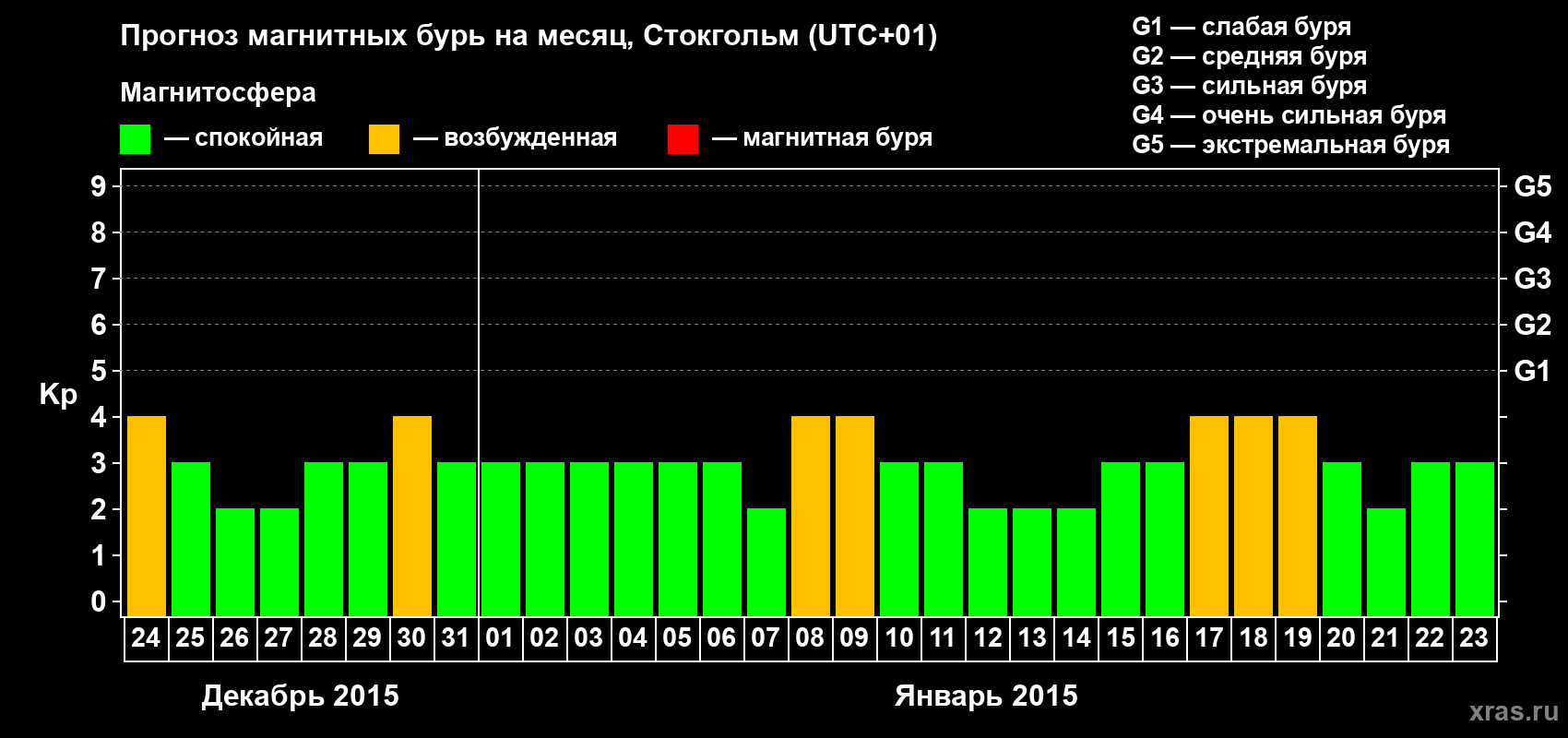 Прогноз магнитных бурь в Стокгольме — 24 декабря 2014 года