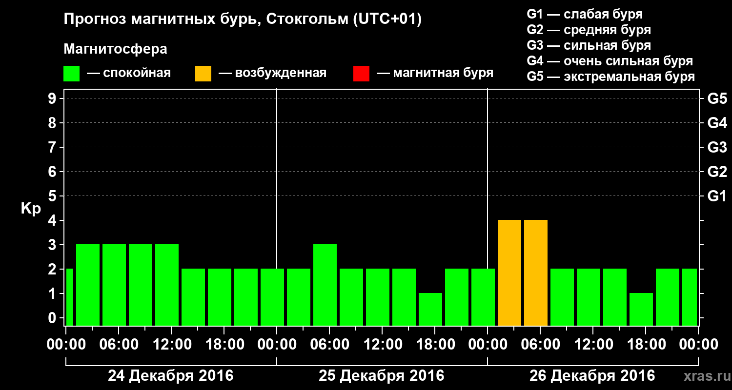 Прогноз магнитных бурь в Стокгольме — 24 декабря 2016 года