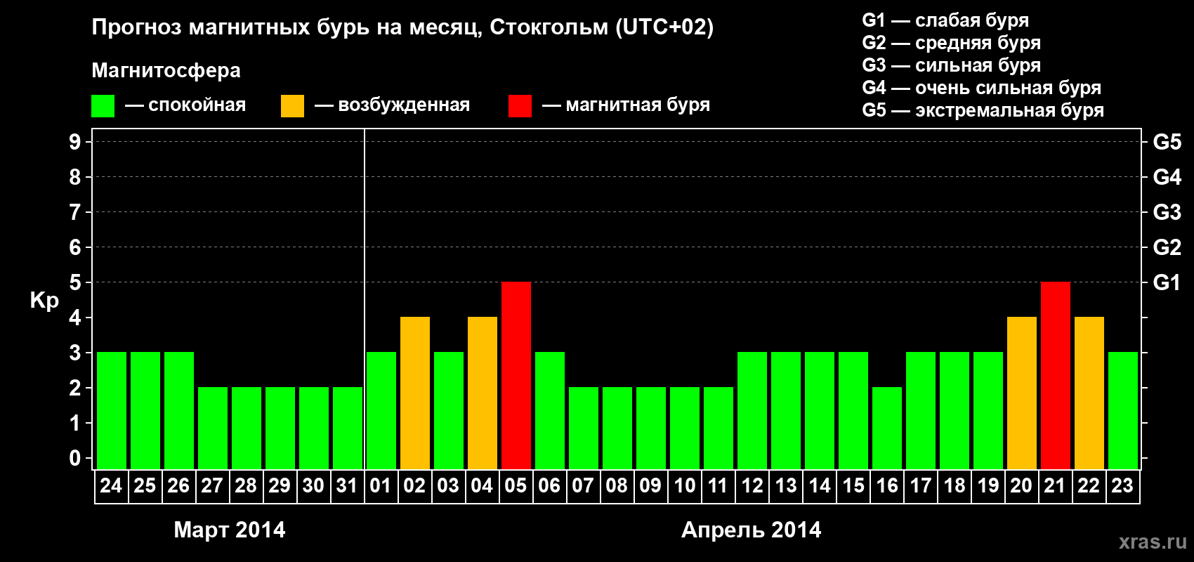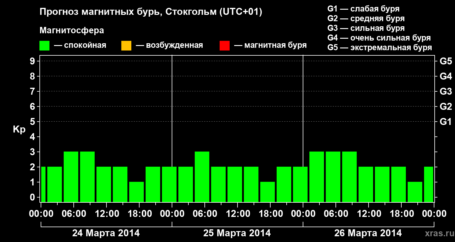 Прогноз магнитных бурь в Стокгольме — 24 марта 2014 года