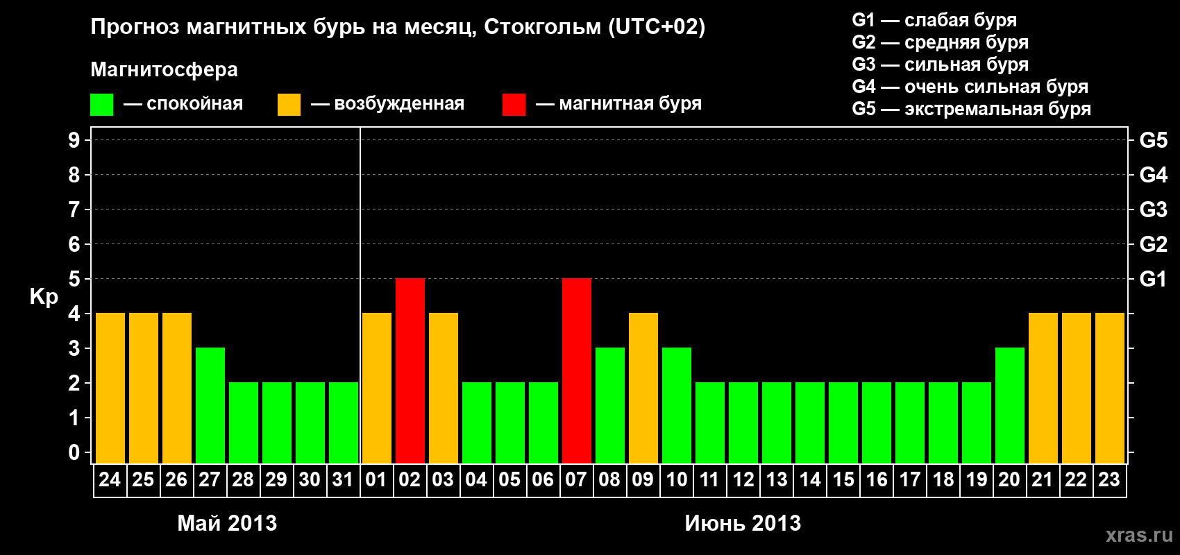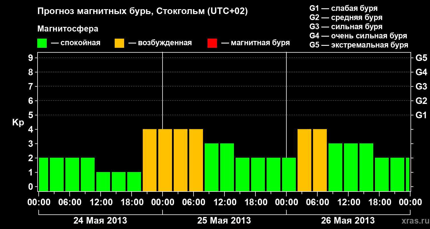 Прогноз магнитных бурь в Стокгольме — 24 мая 2013 года