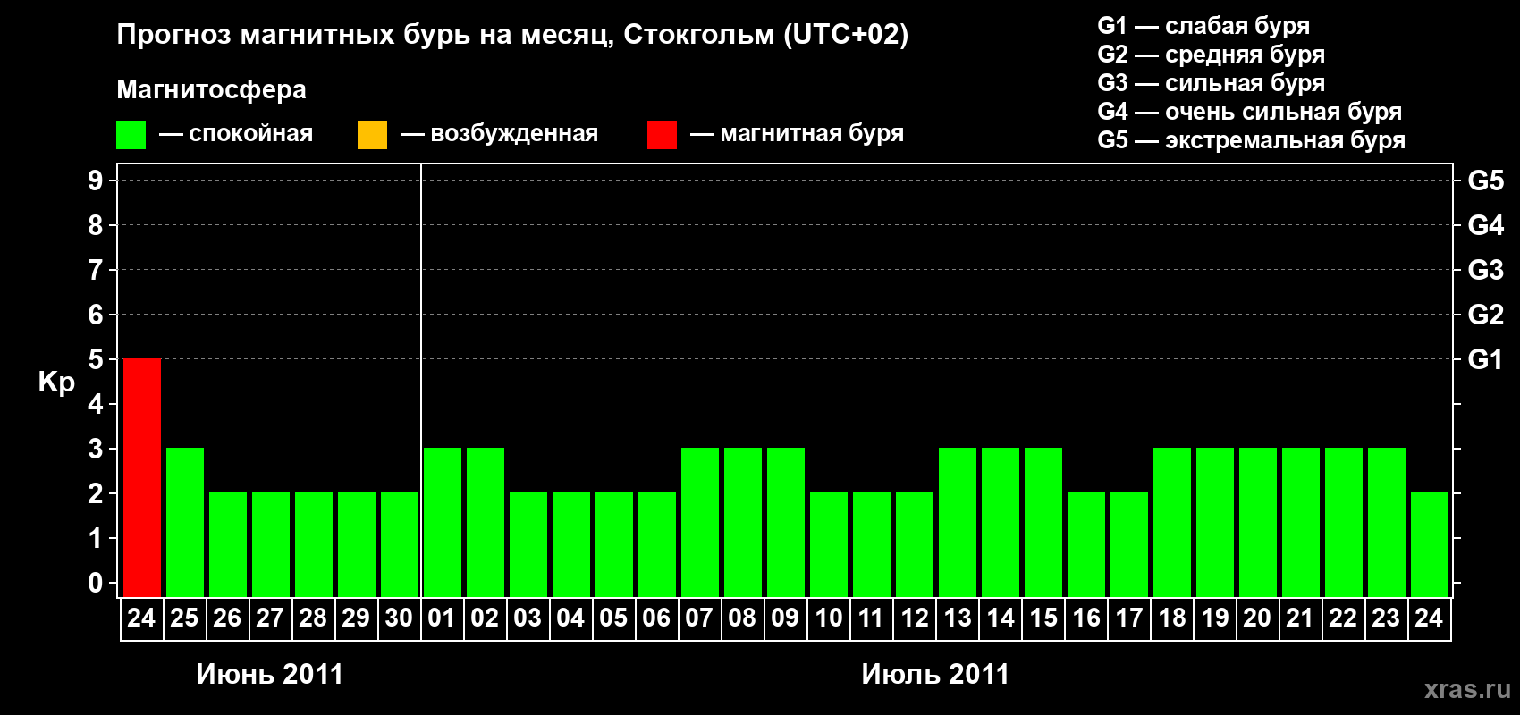 Прогноз магнитных бурь в Стокгольме — 24 июня 2011 года