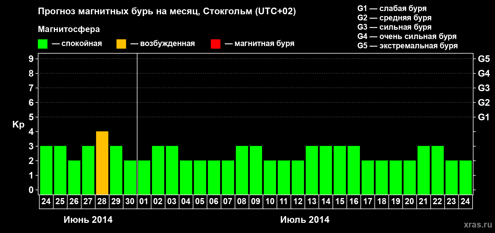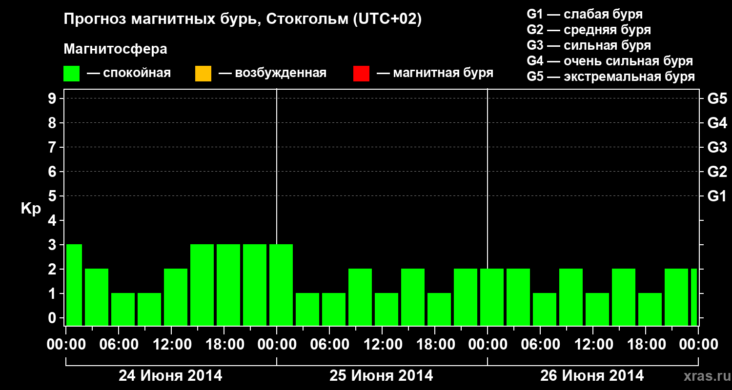Прогноз магнитных бурь в Стокгольме — 24 июня 2014 года