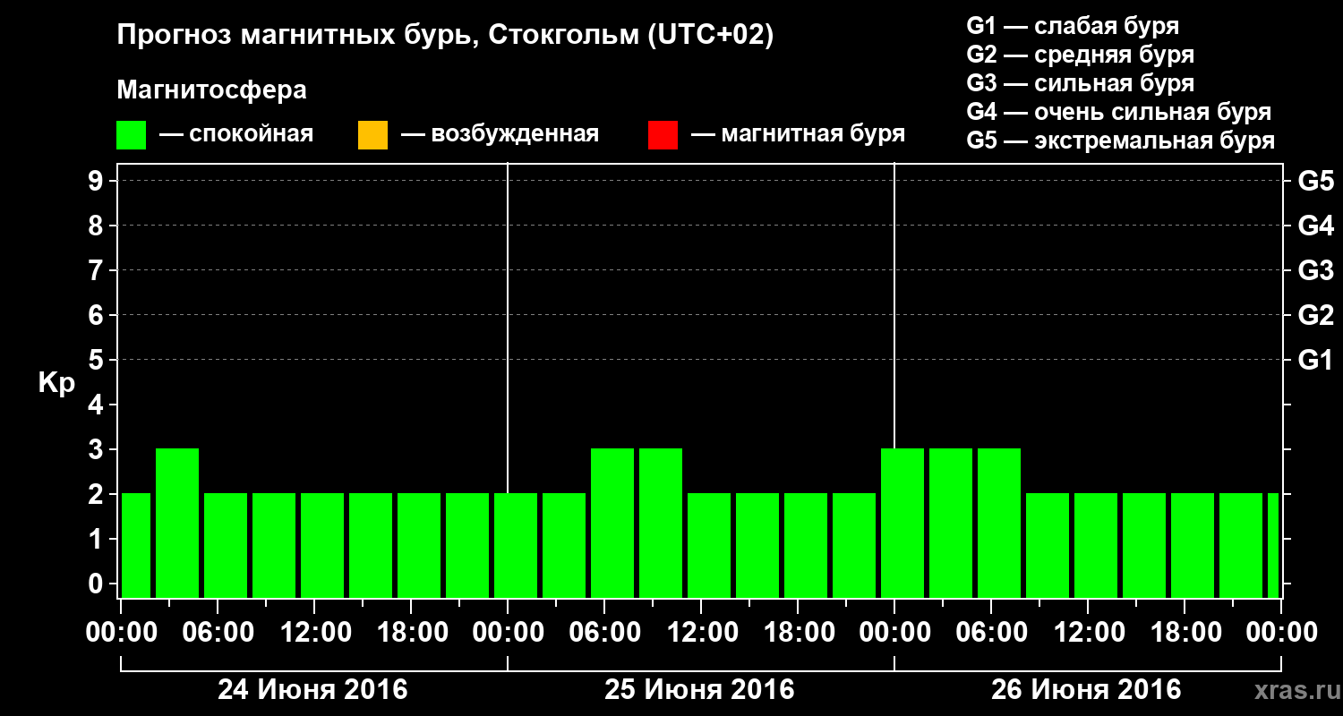 Прогноз магнитных бурь в Стокгольме — 24 июня 2016 года