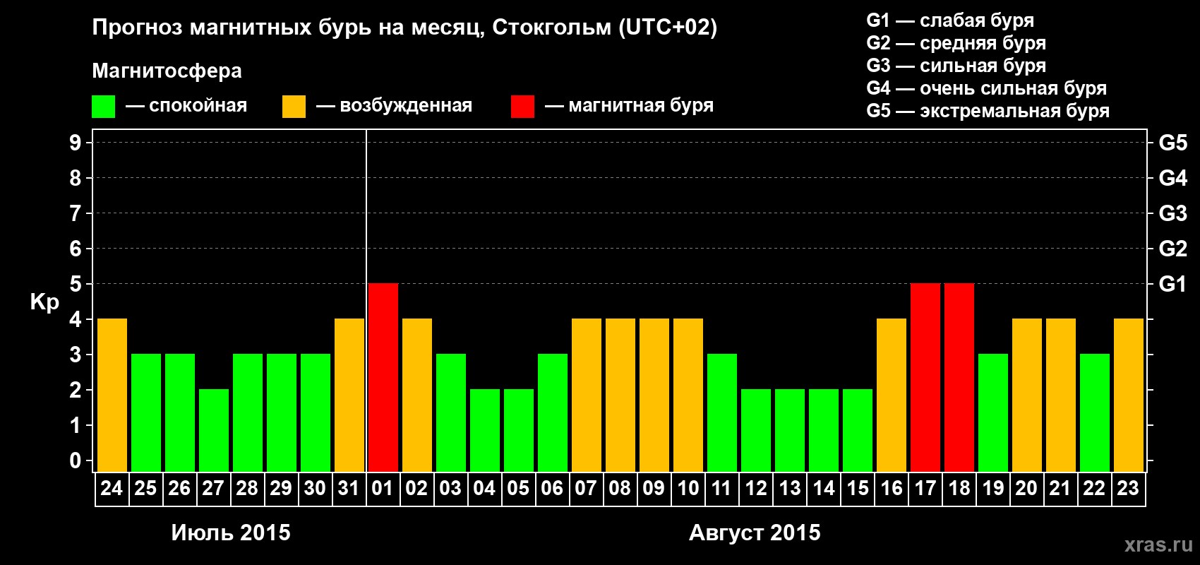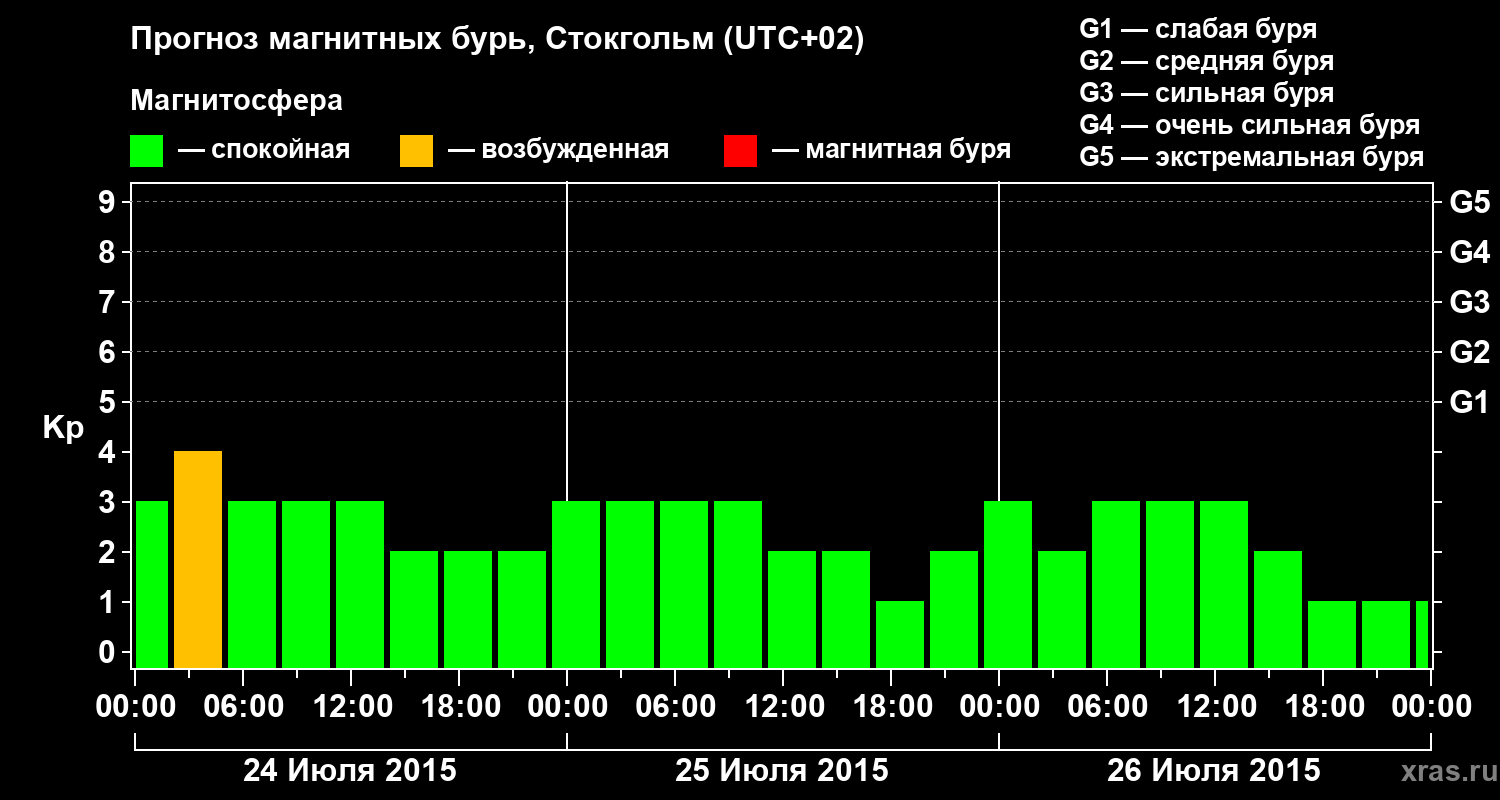 Прогноз магнитных бурь в Стокгольме — 24 июля 2015 года