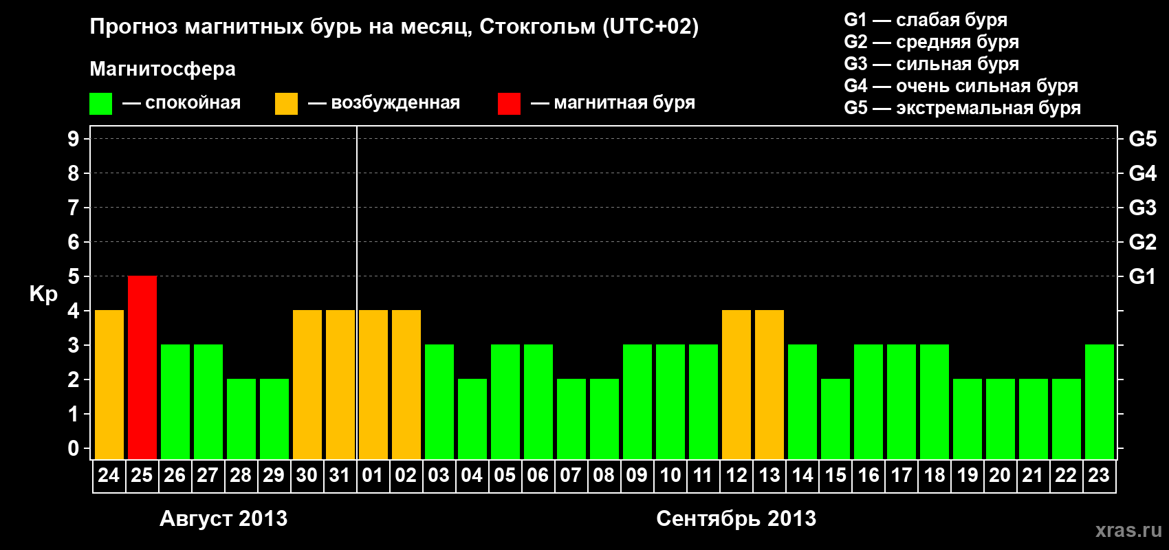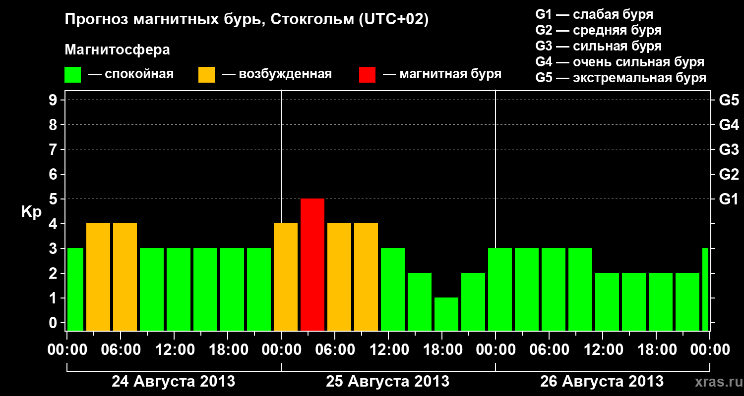 Прогноз магнитных бурь в Стокгольме — 24 августа 2013 года