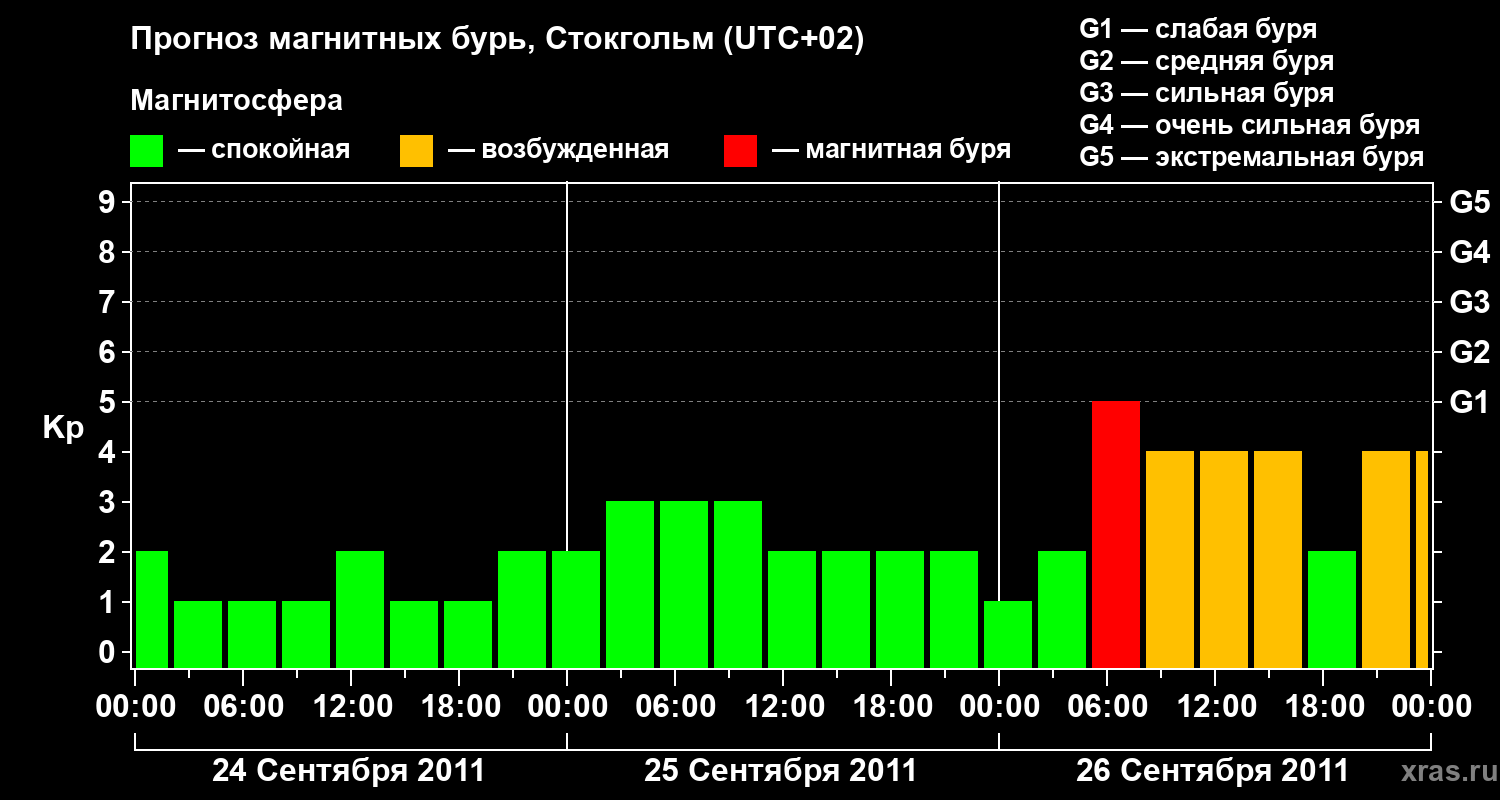 Прогноз магнитных бурь в Стокгольме — 24 сентября 2011 года