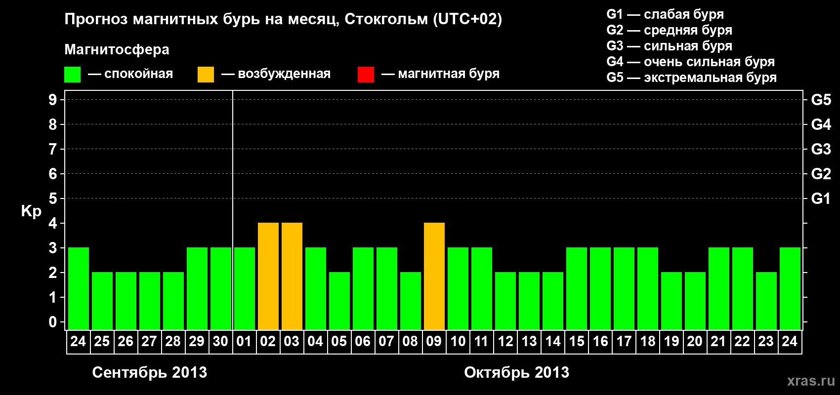 Прогноз магнитных бурь в Стокгольме — 24 сентября 2013 года