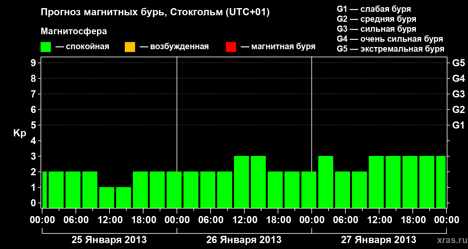 Прогноз магнитных бурь в Стокгольме — 25 января 2013 года