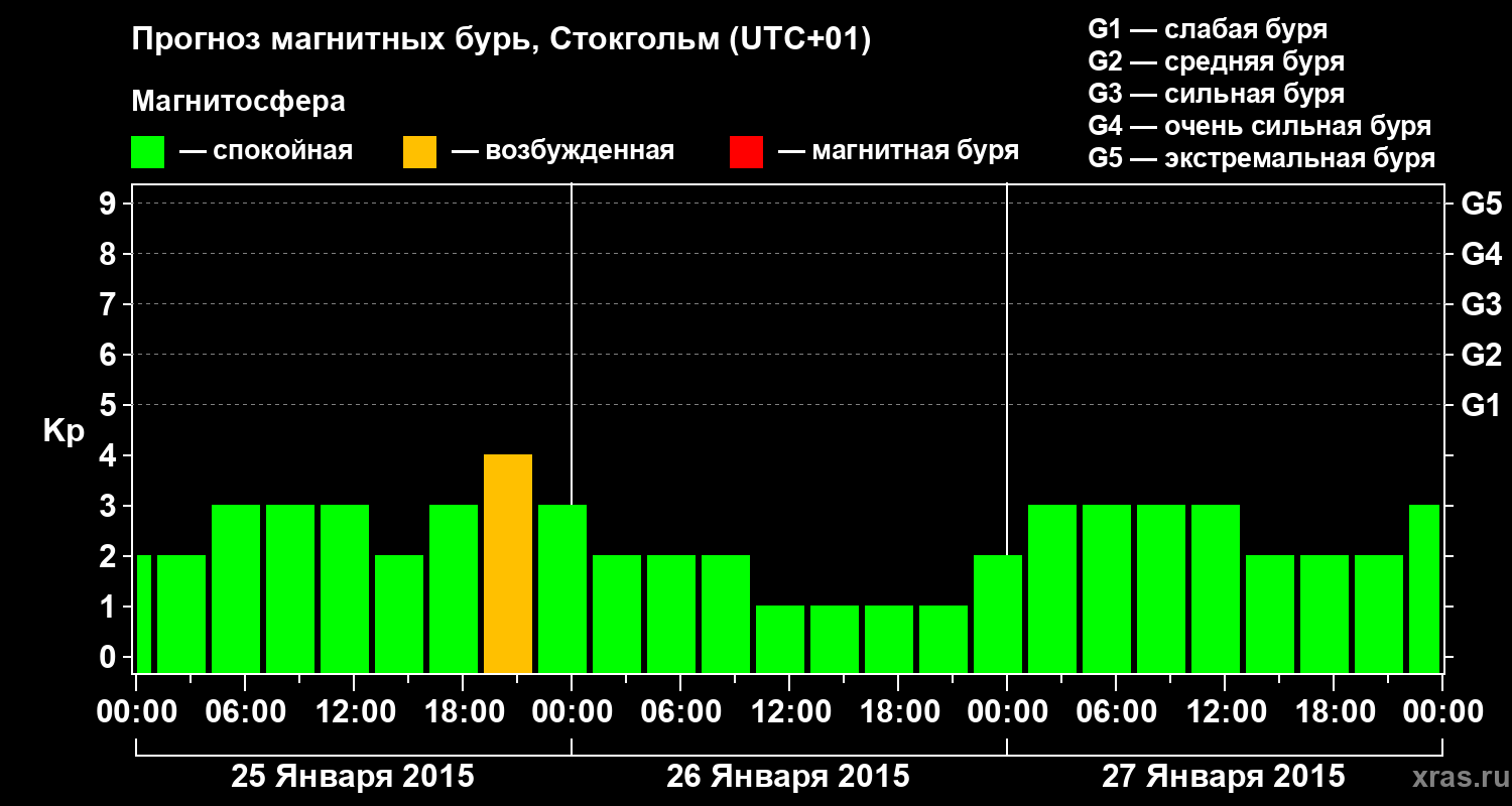 Прогноз магнитных бурь в Стокгольме — 25 января 2015 года