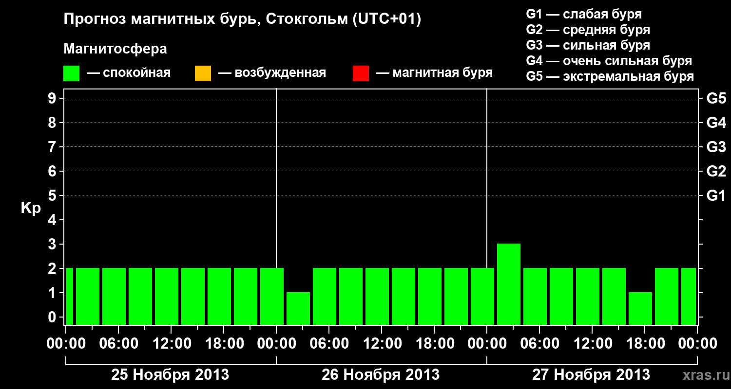 Прогноз магнитных бурь в Стокгольме — 25 ноября 2013 года