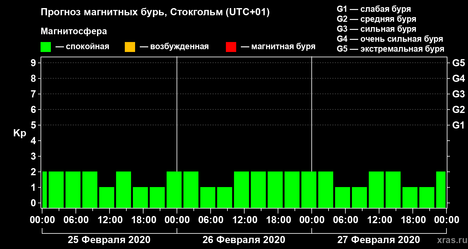 Прогноз магнитных бурь в Стокгольме — 25 февраля 2020 года