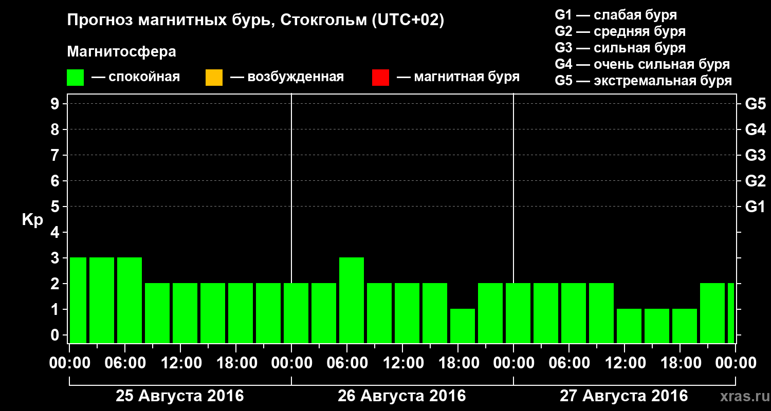 Прогноз магнитных бурь в Стокгольме — 25 августа 2016 года