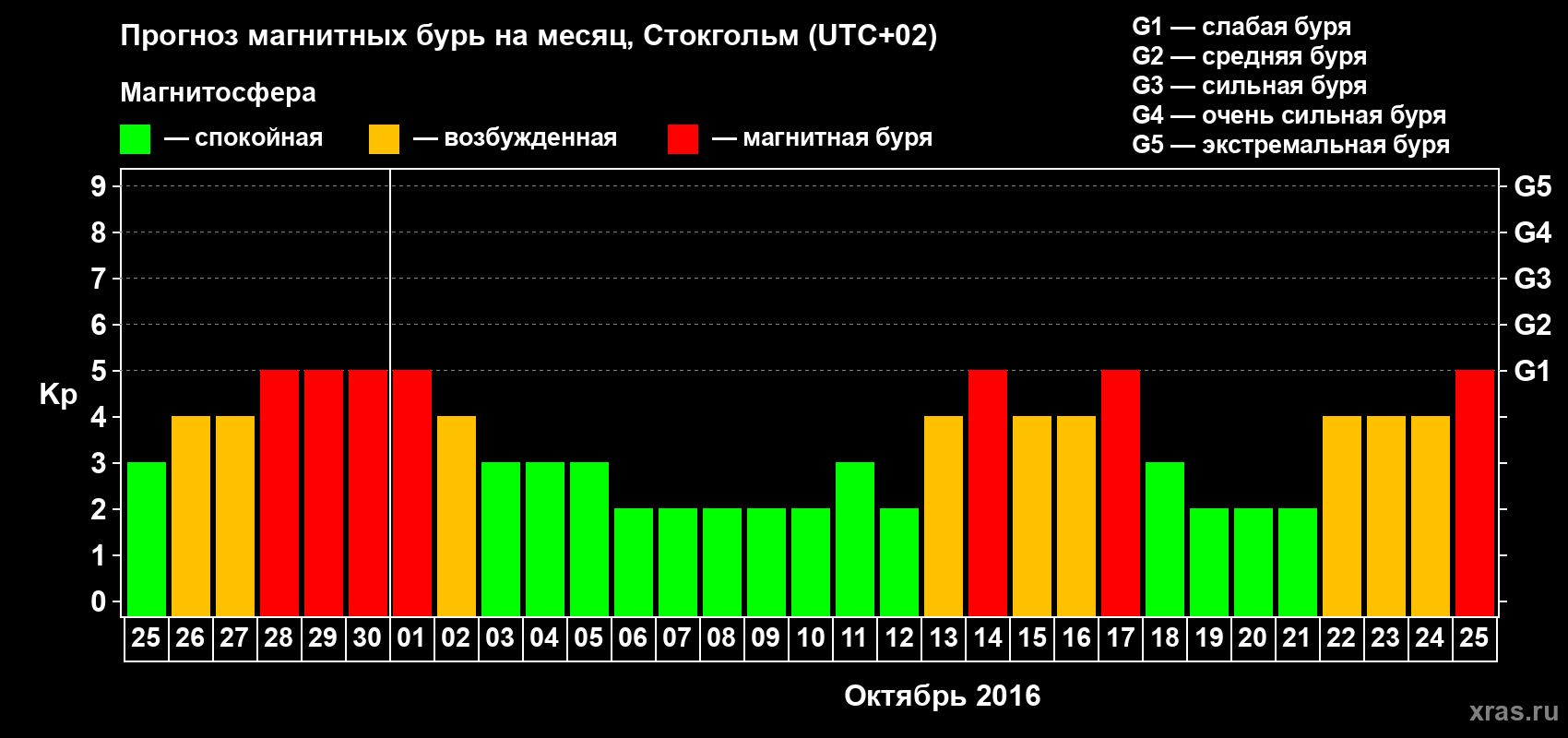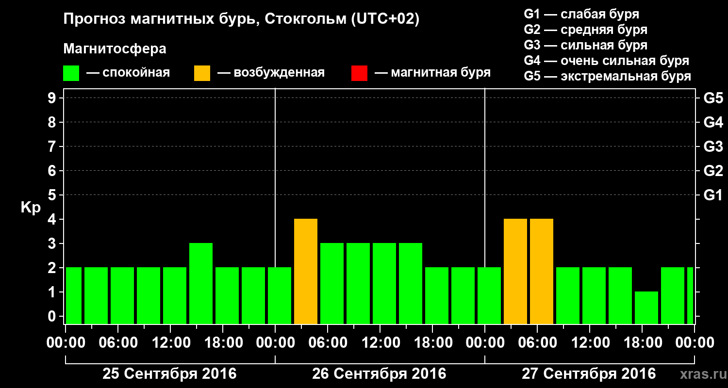 Прогноз магнитных бурь в Стокгольме — 25 сентября 2016 года