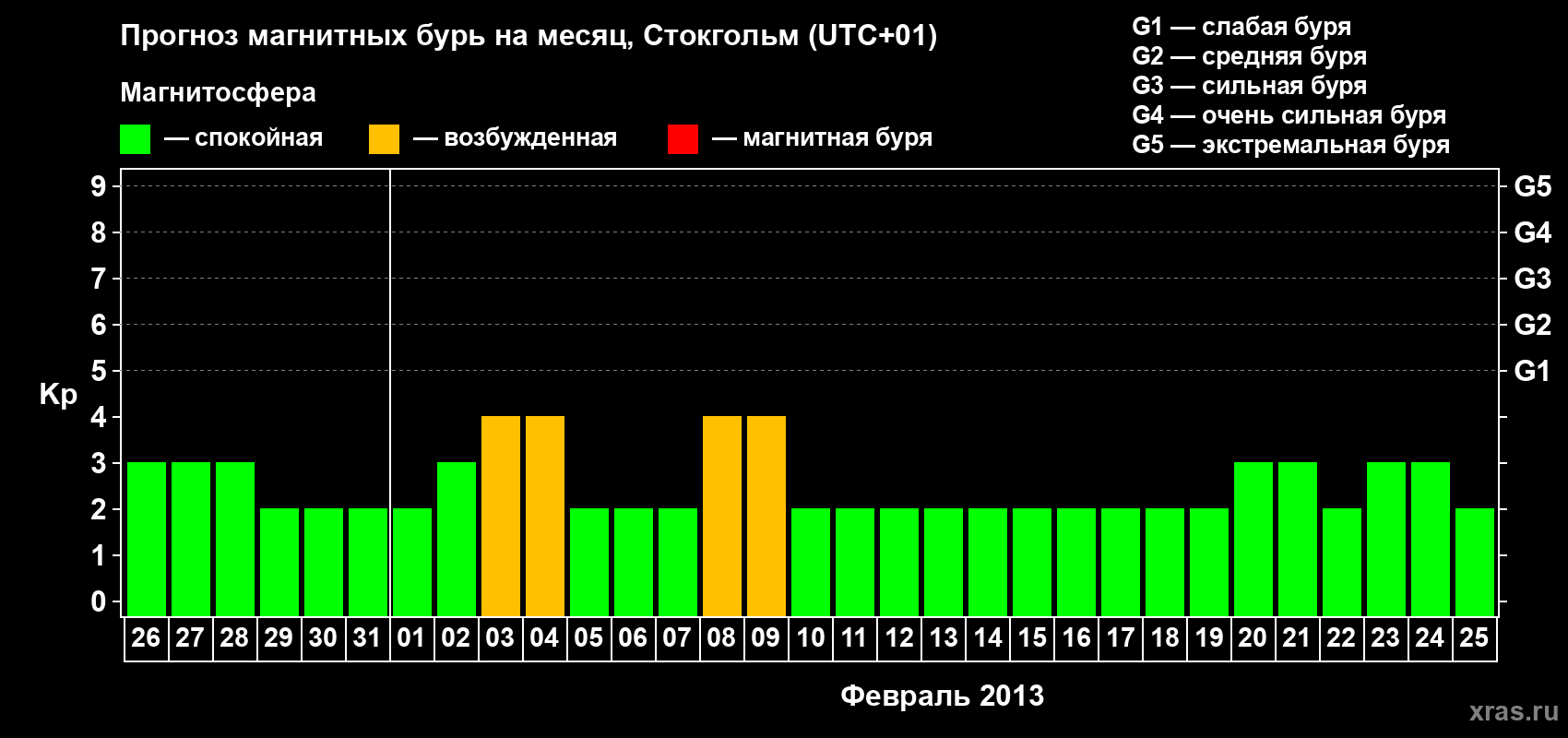 Прогноз магнитных бурь в Стокгольме — 26 января 2013 года