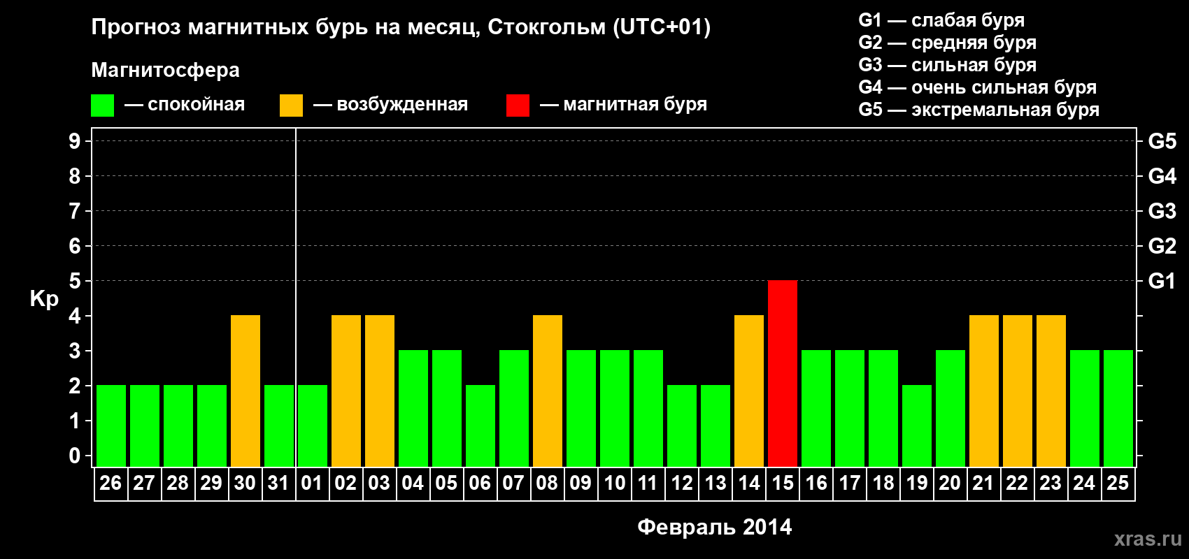 Прогноз магнитных бурь в Стокгольме — 26 января 2014 года