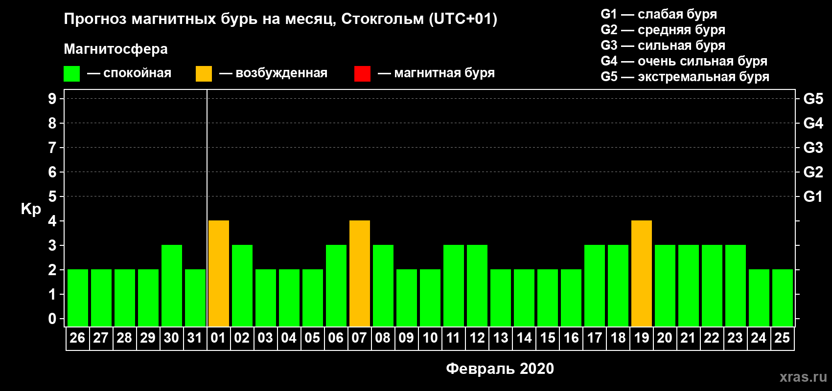 Прогноз магнитных бурь в Стокгольме — 26 января 2020 года