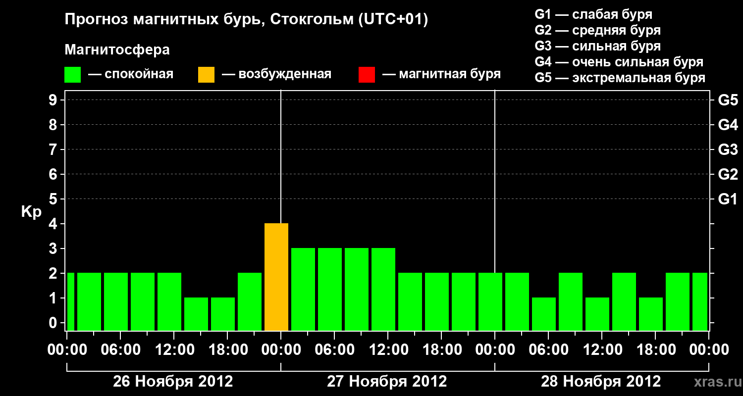 Прогноз магнитных бурь в Стокгольме — 26 ноября 2012 года