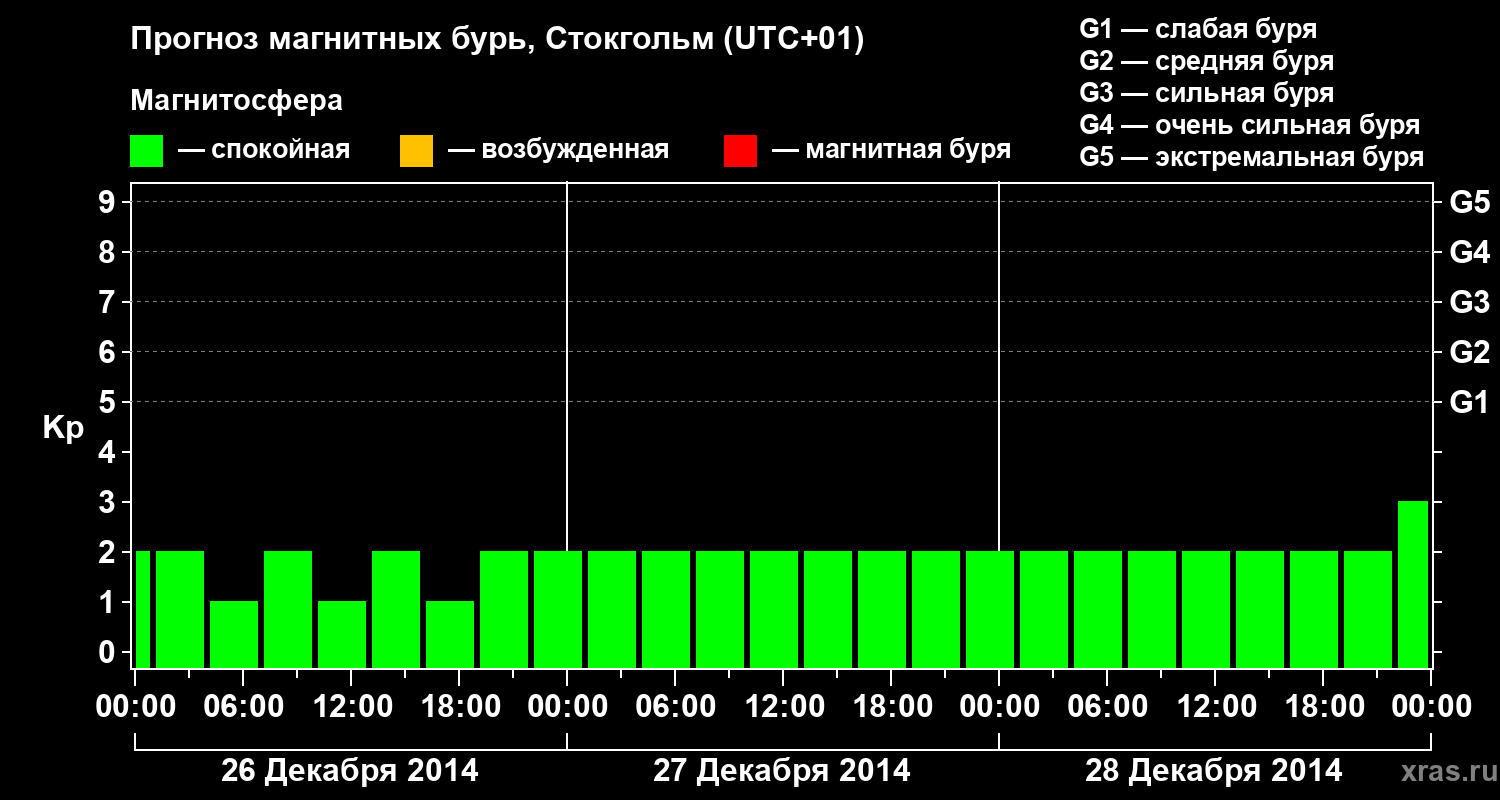 Прогноз магнитных бурь в Стокгольме — 26 декабря 2014 года