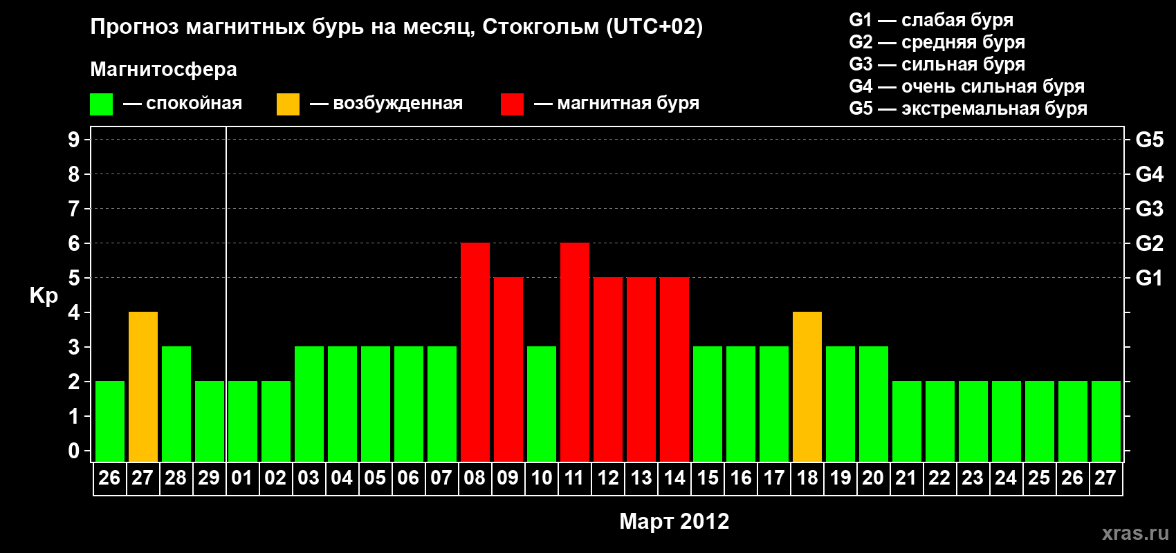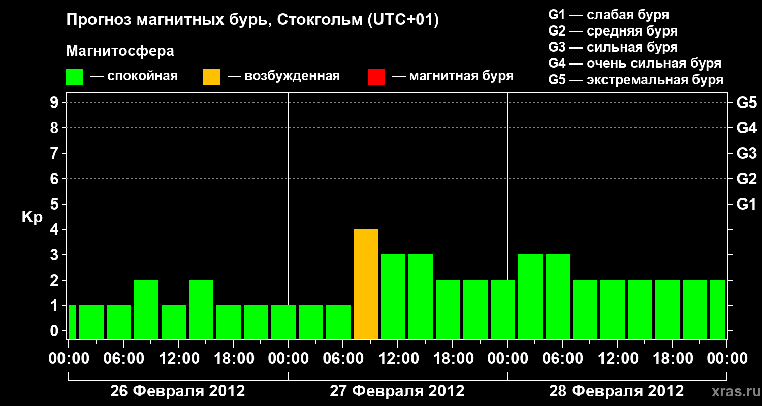 Прогноз магнитных бурь в Стокгольме — 26 февраля 2012 года