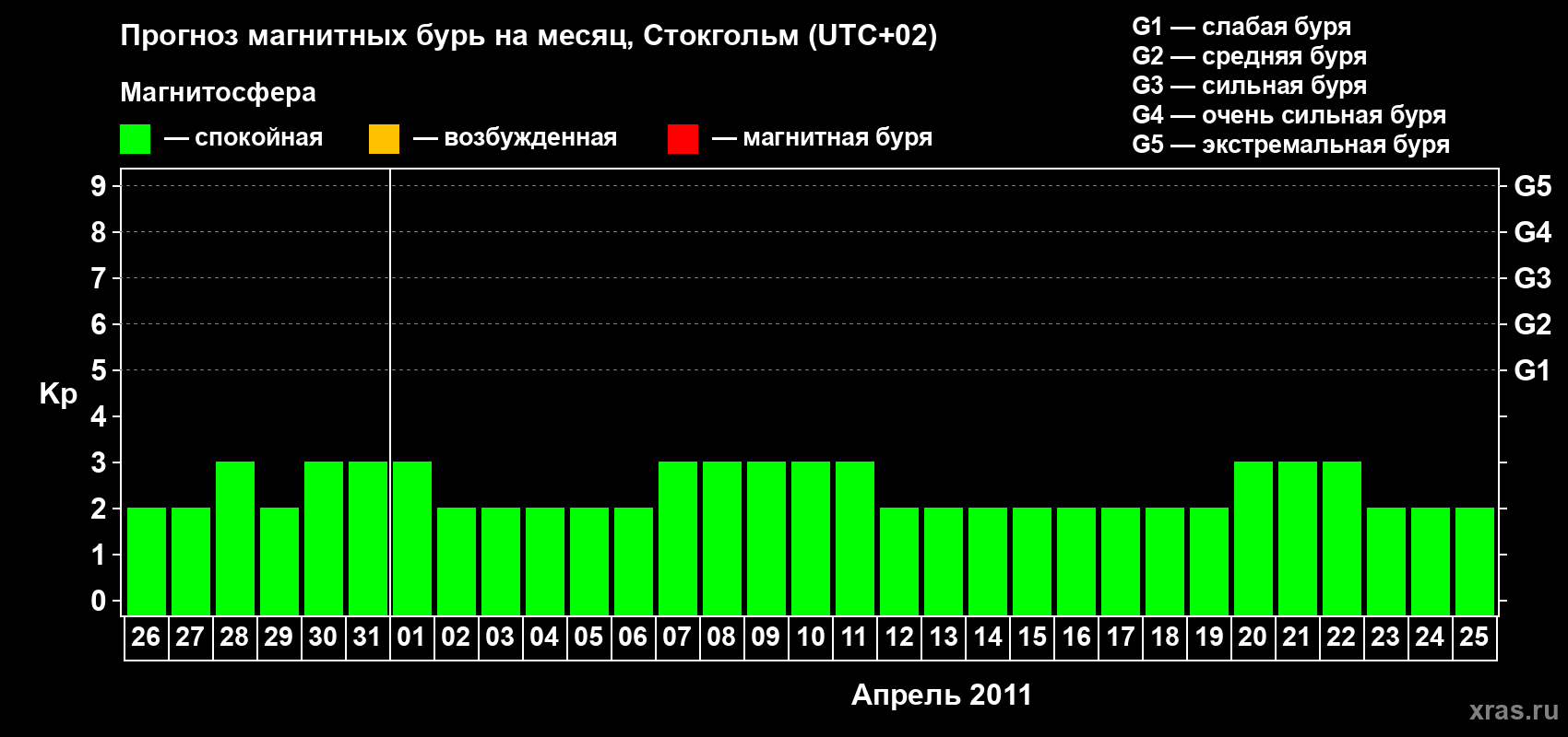 Прогноз магнитных бурь в Стокгольме — 26 марта 2011 года