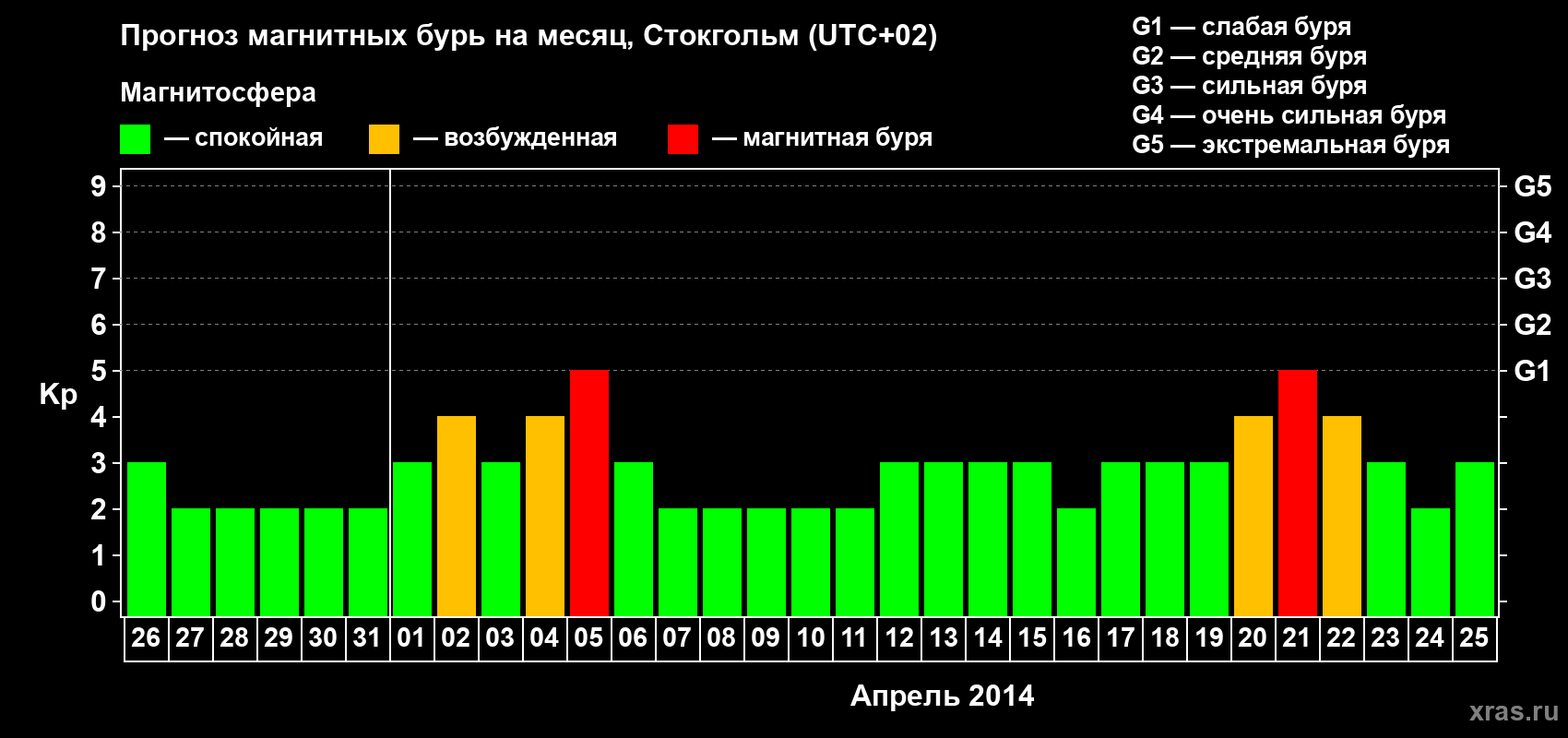 Прогноз магнитных бурь в Стокгольме — 26 марта 2014 года