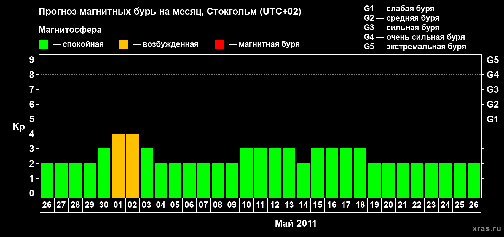 Прогноз магнитных бурь в Стокгольме — 26 апреля 2011 года