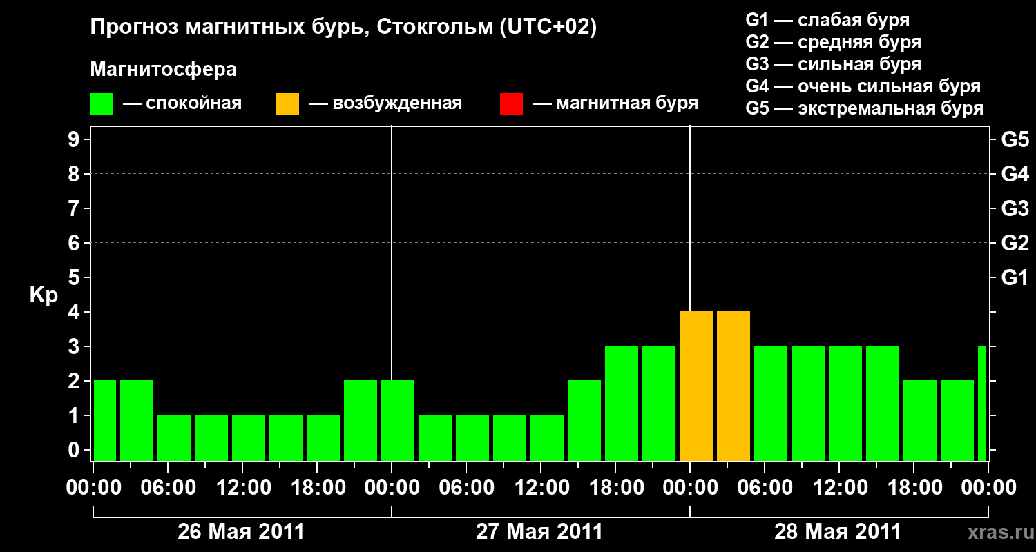 Прогноз магнитных бурь в Стокгольме — 26 мая 2011 года