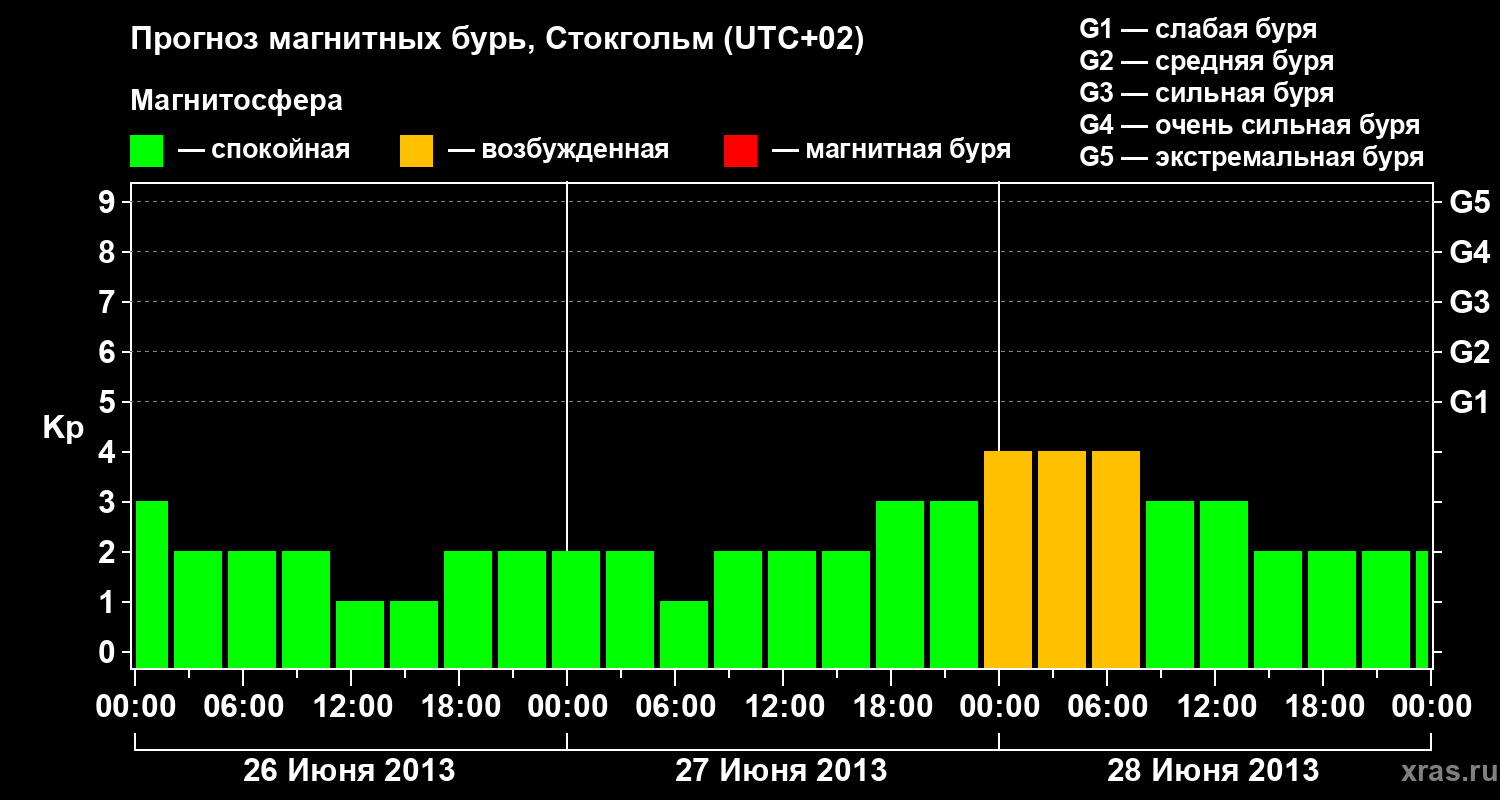 Прогноз магнитных бурь в Стокгольме — 26 июня 2013 года