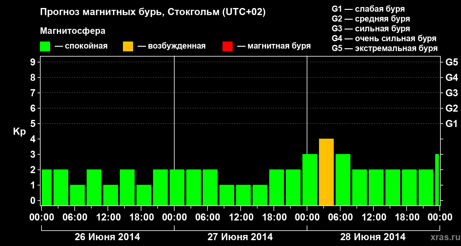 Прогноз магнитных бурь в Стокгольме — 26 июня 2014 года