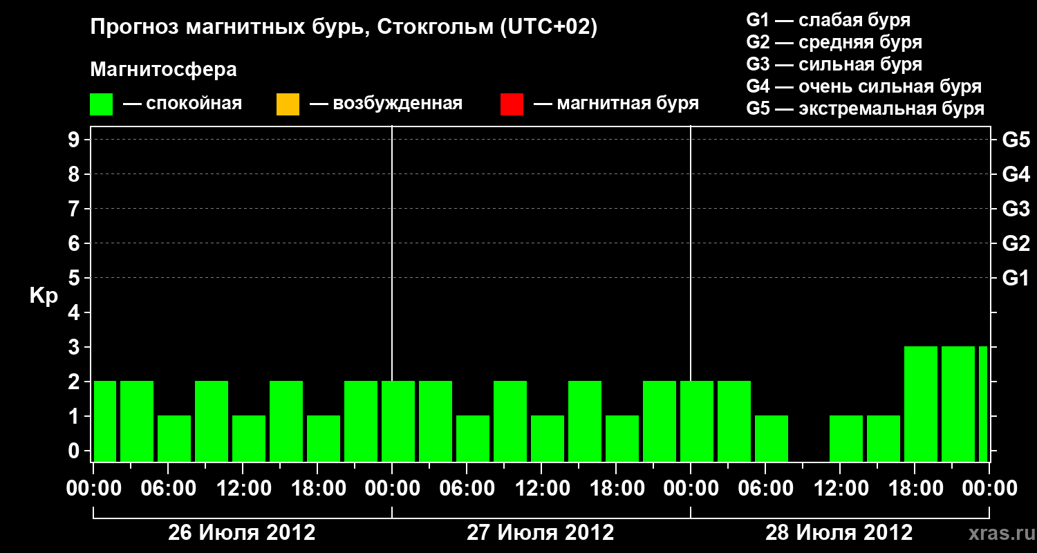 Прогноз магнитных бурь в Стокгольме — 26 июля 2012 года