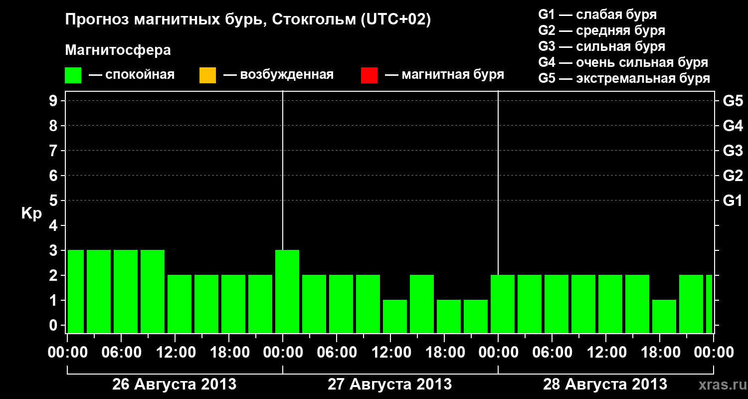 Прогноз магнитных бурь в Стокгольме — 26 августа 2013 года