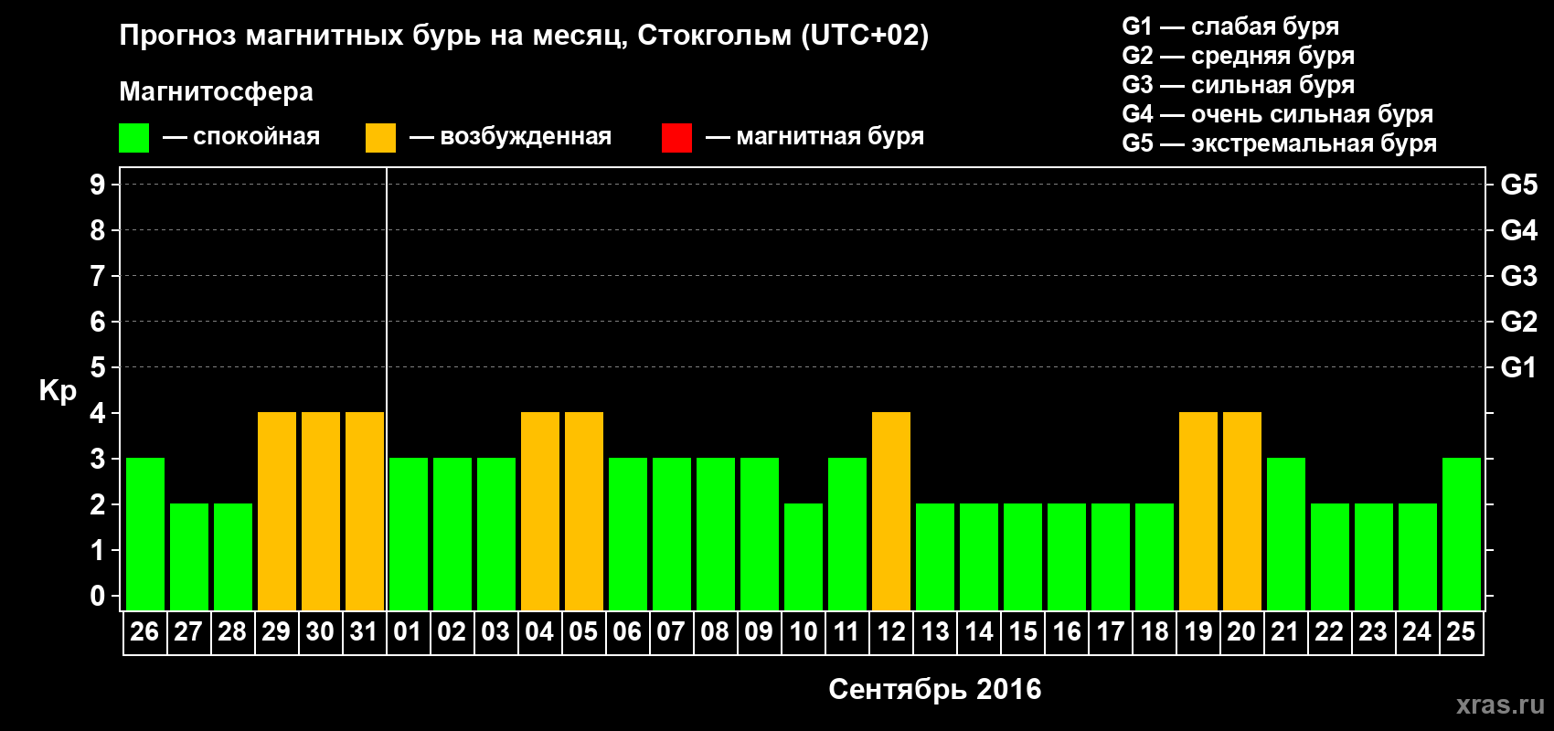 Прогноз магнитных бурь в Стокгольме — 26 августа 2016 года