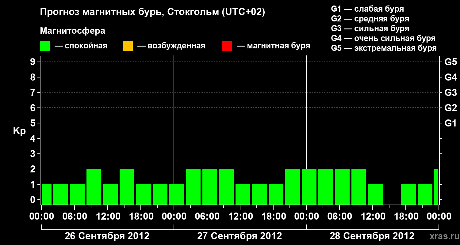 Прогноз магнитных бурь в Стокгольме — 26 сентября 2012 года