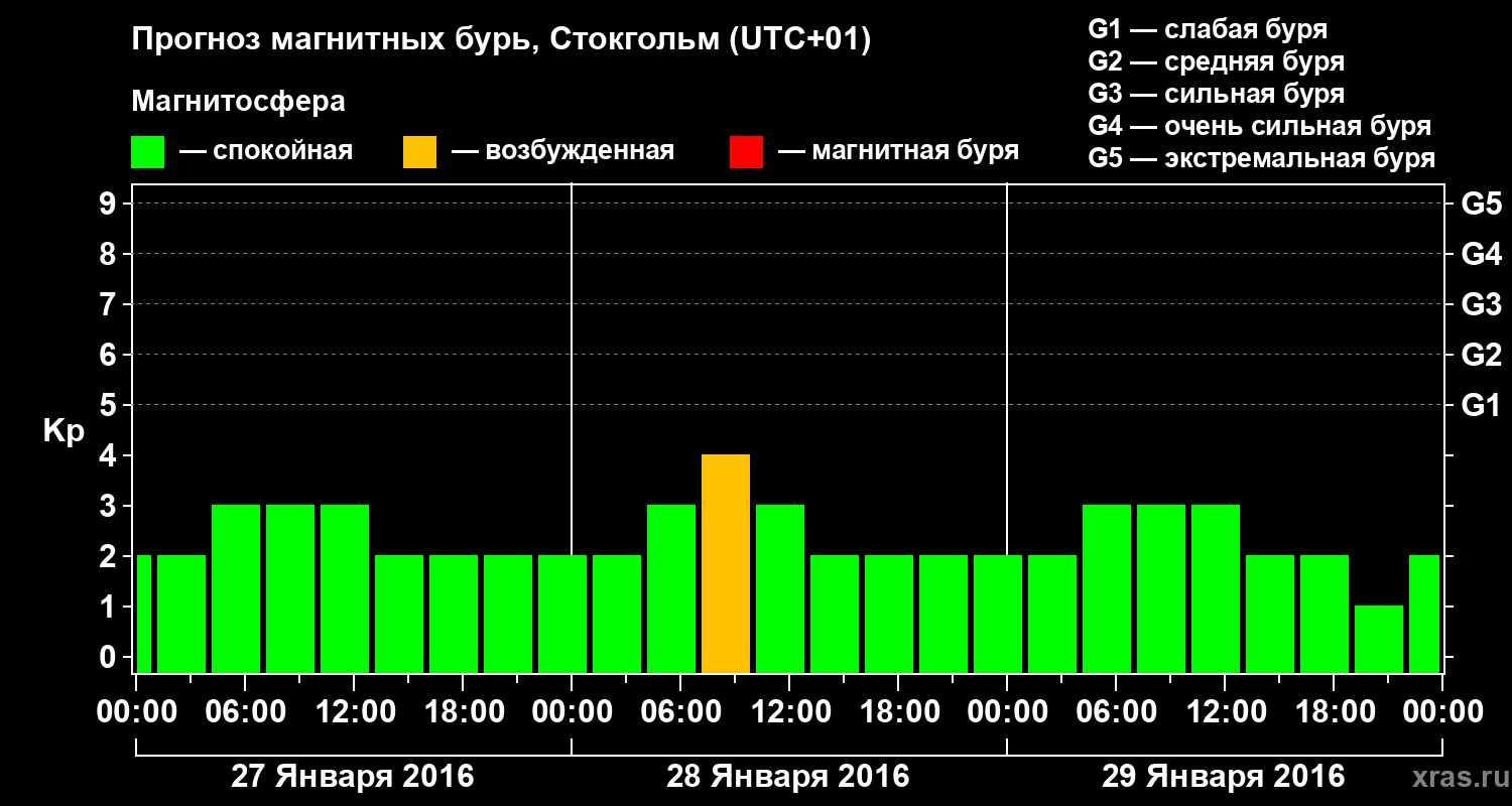 Прогноз магнитных бурь в Стокгольме — 27 января 2016 года