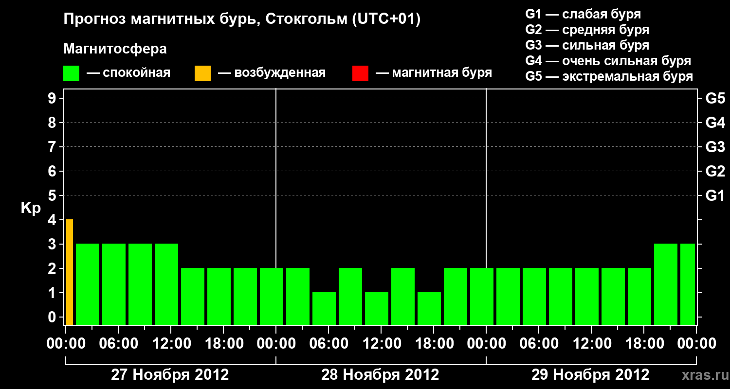 Прогноз магнитных бурь в Стокгольме — 27 ноября 2012 года