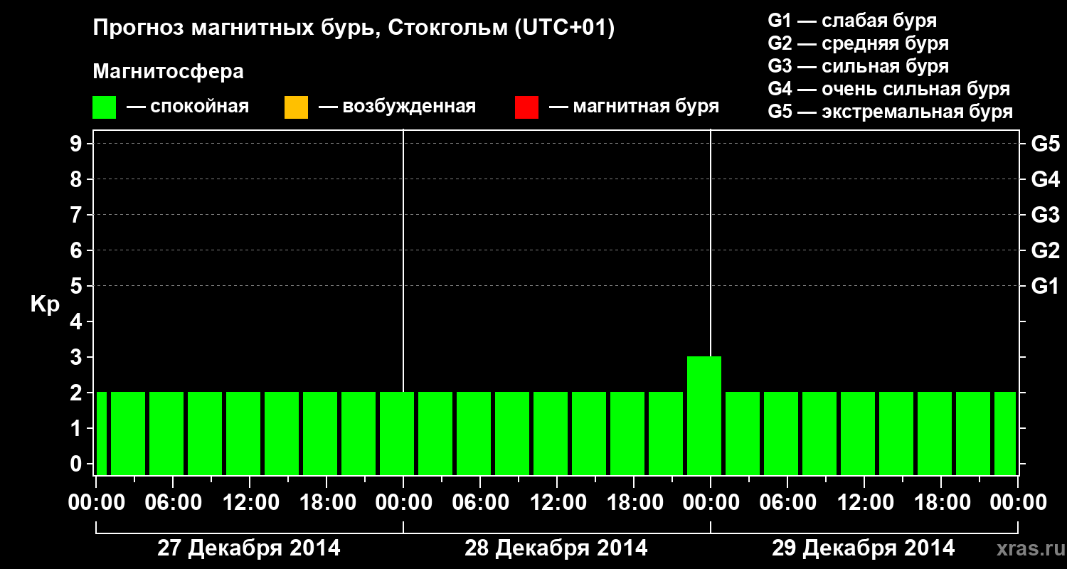 Прогноз магнитных бурь в Стокгольме — 27 декабря 2014 года