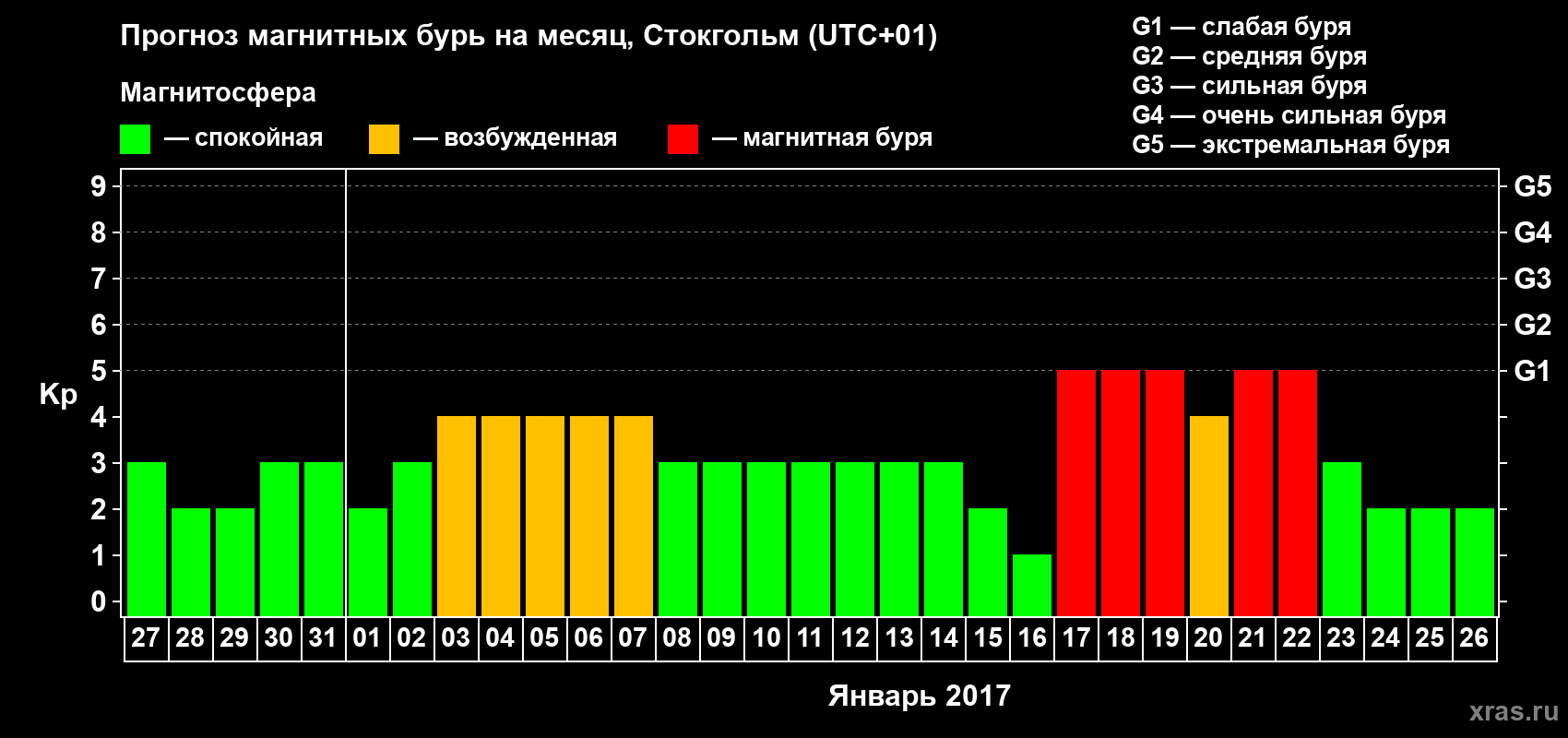 Прогноз магнитных бурь в Стокгольме — 27 декабря 2016 года