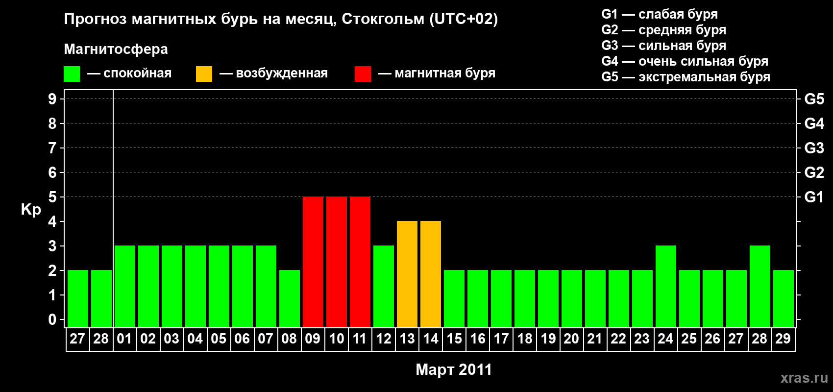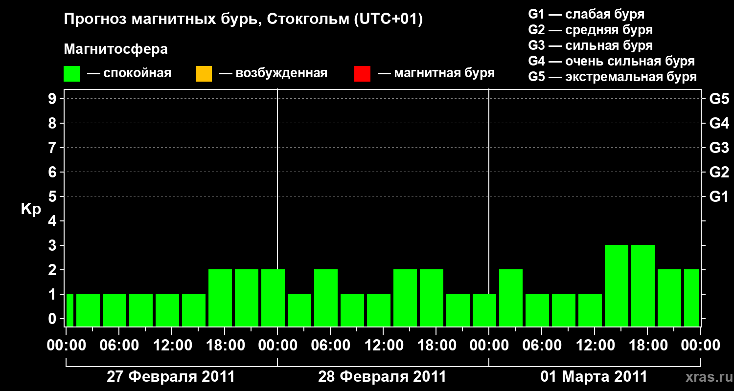 Прогноз магнитных бурь в Стокгольме — 27 февраля 2011 года