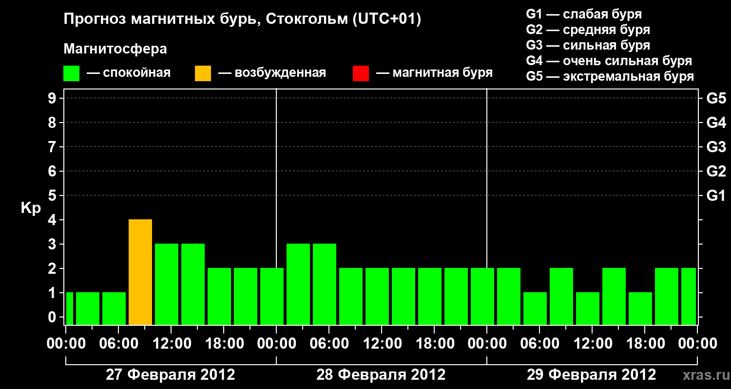 Прогноз магнитных бурь в Стокгольме — 27 февраля 2012 года