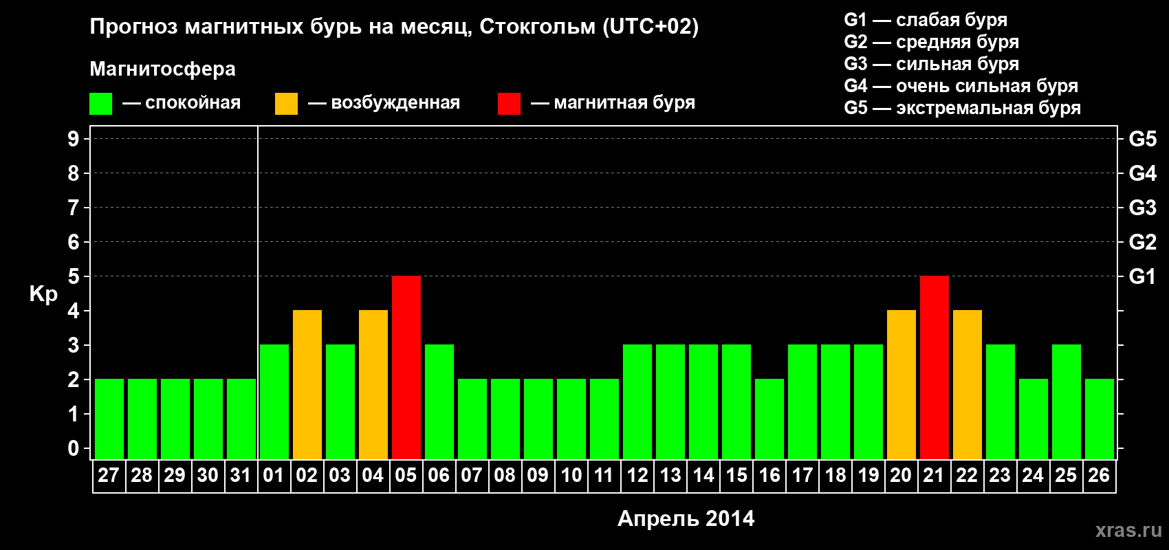 Прогноз магнитных бурь в Стокгольме — 27 марта 2014 года