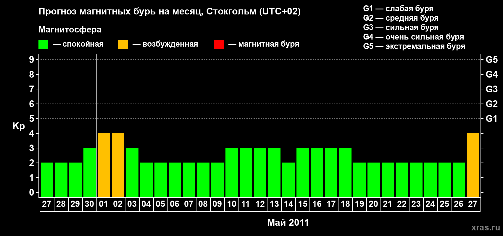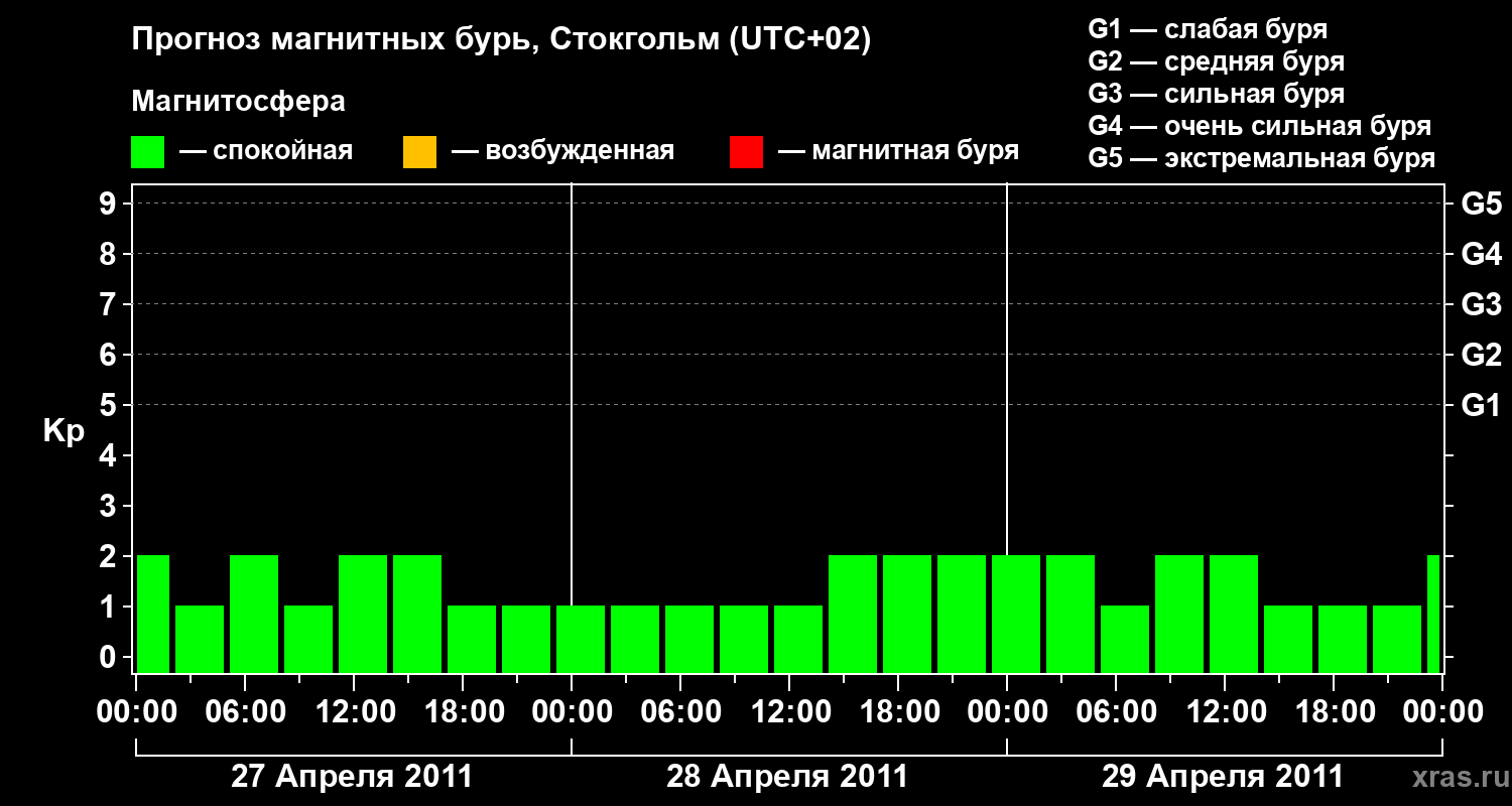 Прогноз магнитных бурь в Стокгольме — 27 апреля 2011 года