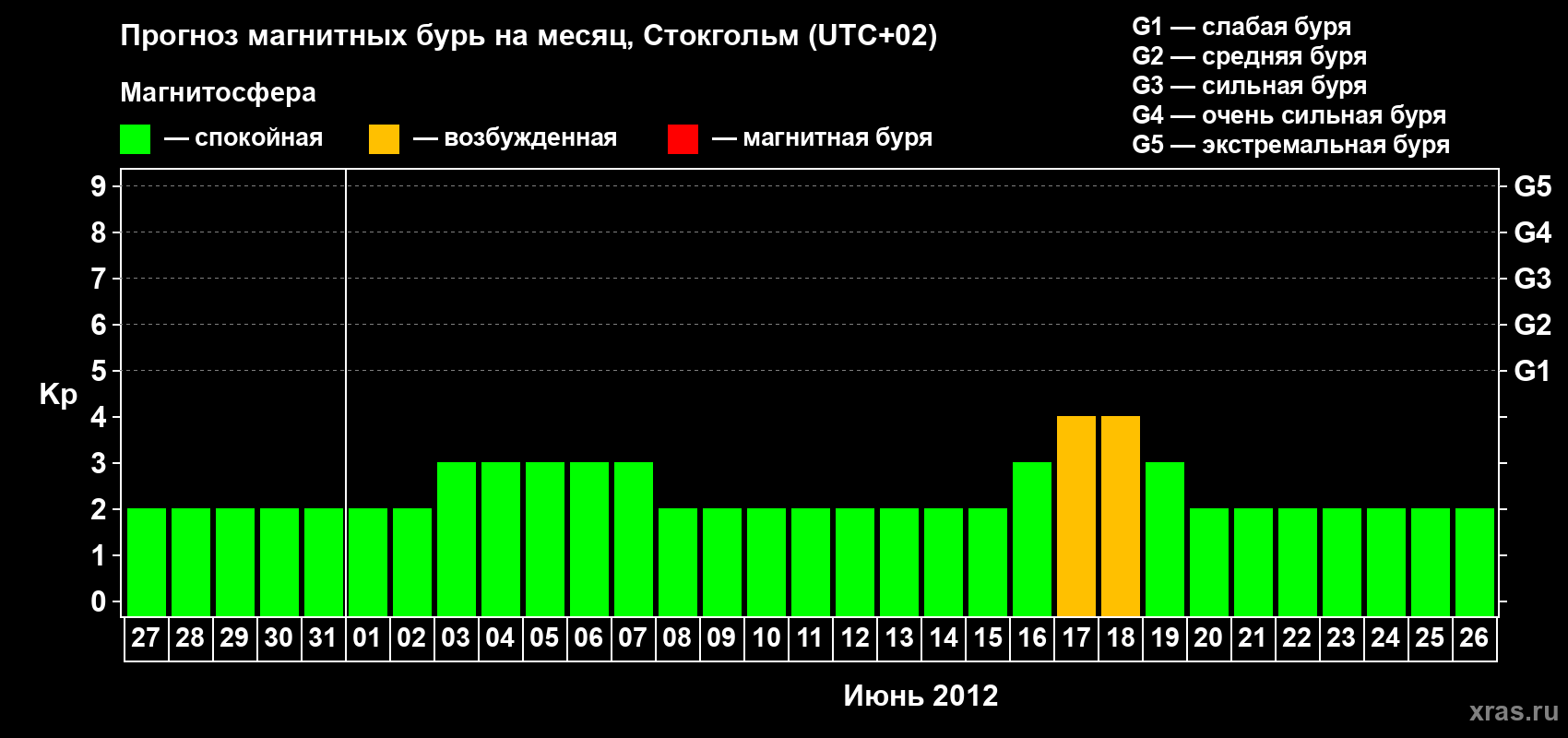 Прогноз магнитных бурь в Стокгольме — 27 мая 2012 года