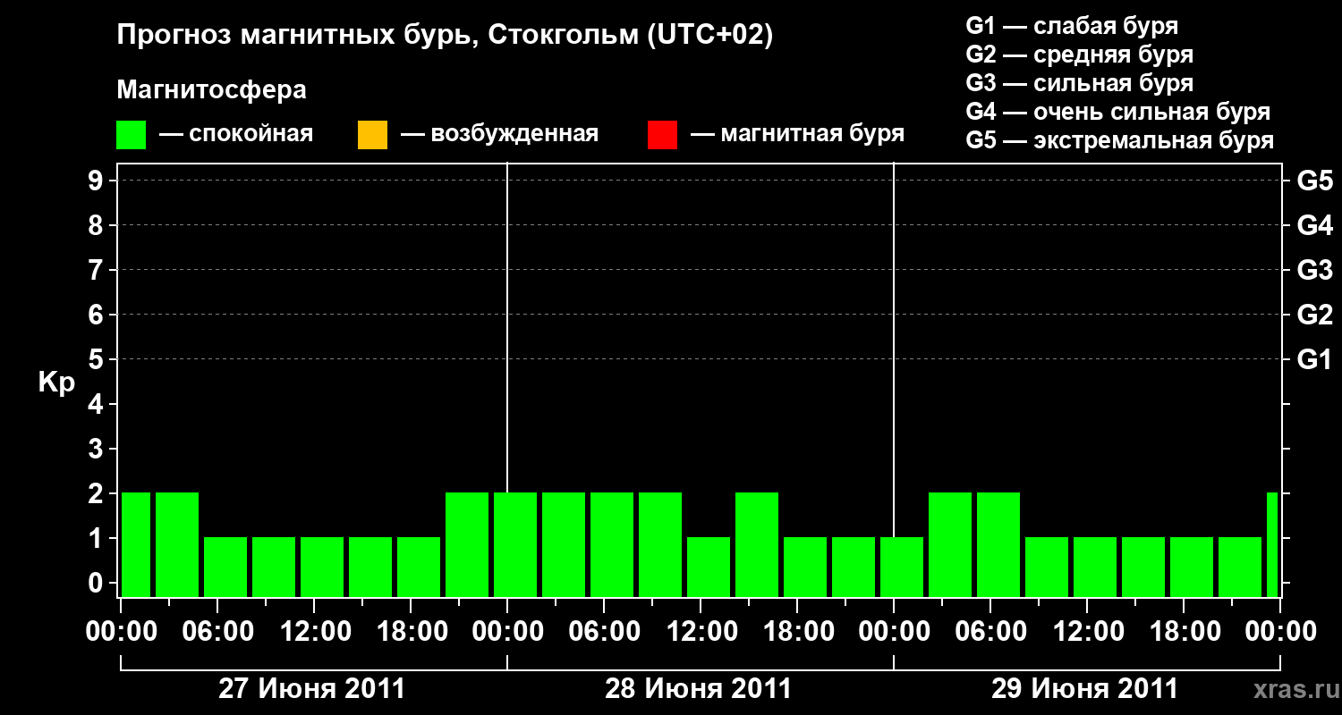 Прогноз магнитных бурь в Стокгольме — 27 июня 2011 года