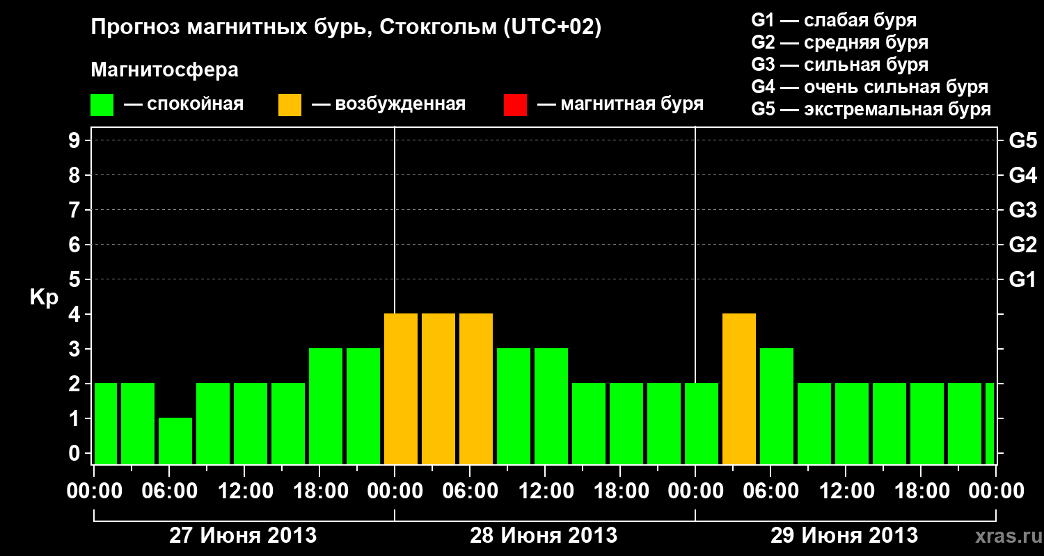 Прогноз магнитных бурь в Стокгольме — 27 июня 2013 года