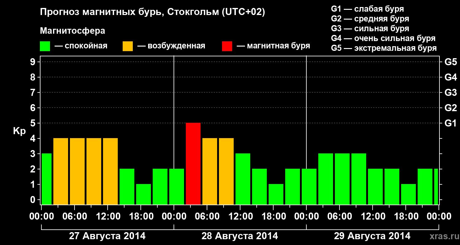 Прогноз магнитных бурь в Стокгольме — 27 августа 2014 года