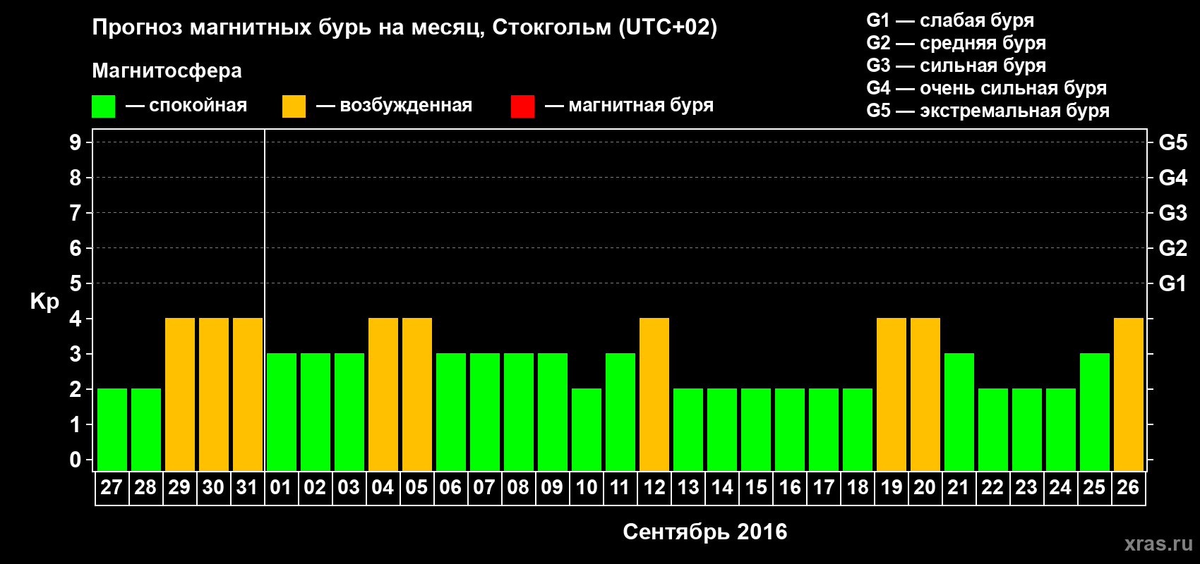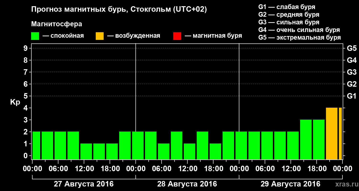 Прогноз магнитных бурь в Стокгольме — 27 августа 2016 года