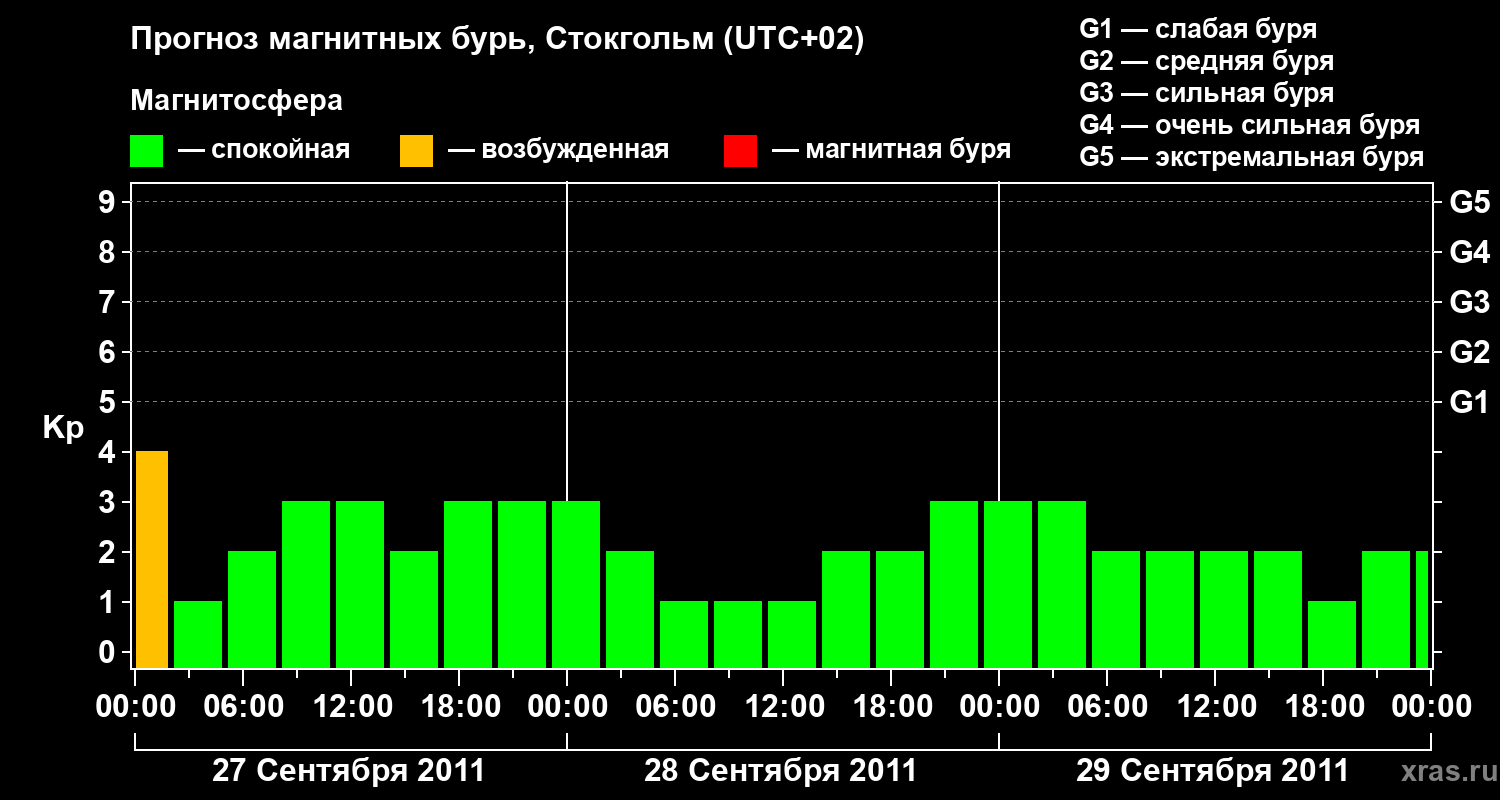 Прогноз магнитных бурь в Стокгольме — 27 сентября 2011 года