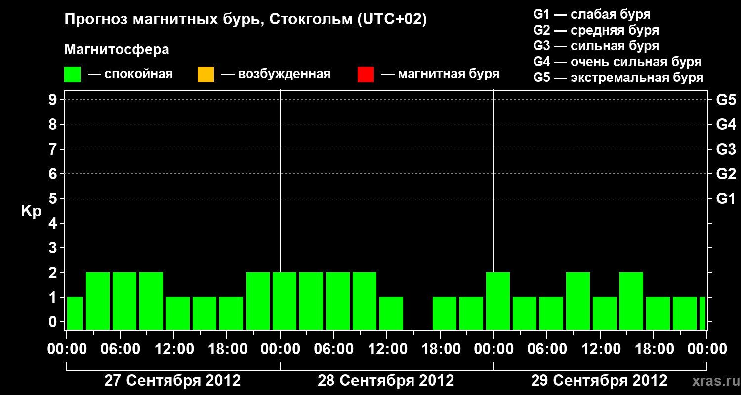 Прогноз магнитных бурь в Стокгольме — 27 сентября 2012 года